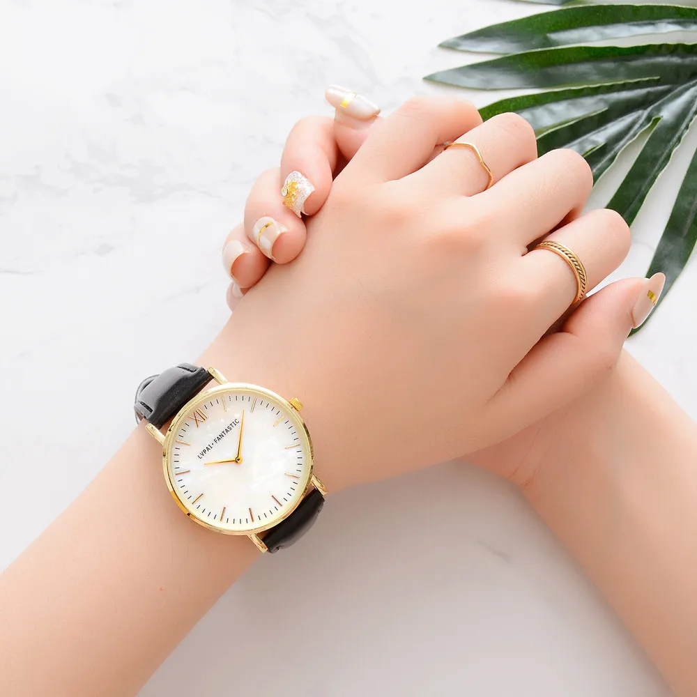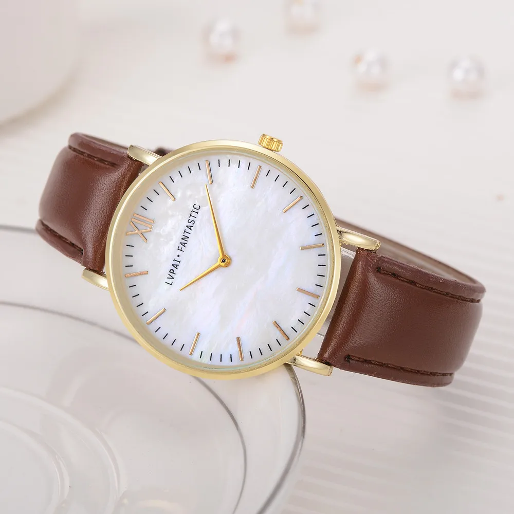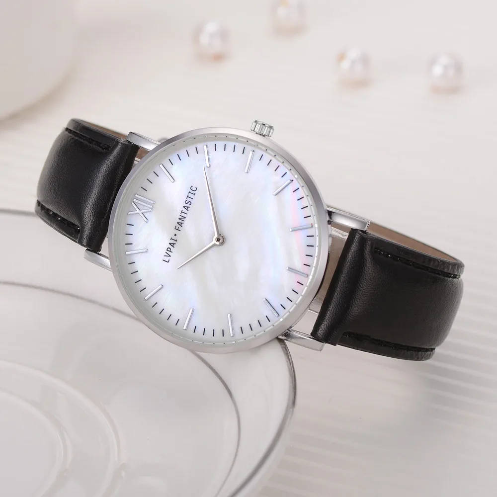 Женские повседневные Роскошные Кварцевые часы с жемчугом и белым циферблатом, кожаный ремешок, женские наручные часы, платье, relogio feminino zegarek damski Wdsea3