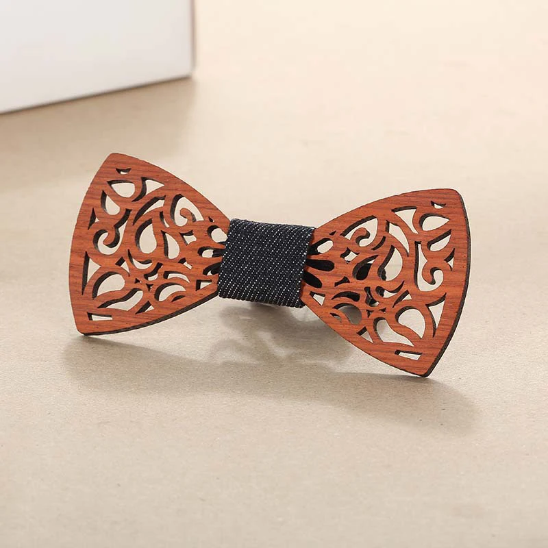 Деревянный галстук-бабочка унисекс, открытый резной Ретро деревянный шейный Регулируемый винтажный