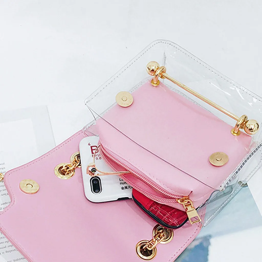 Модная женская прозрачная квадратная сумка, сумка через плечо + сумочка-кошелек