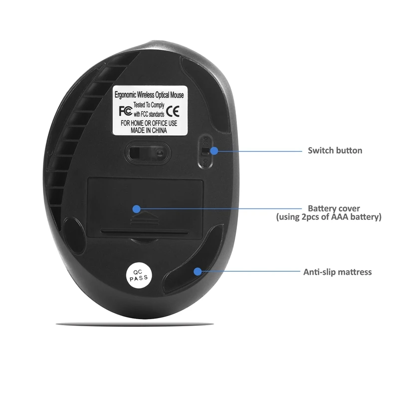 Ergonomic Wireless Mouse 2.4G Vertical Optical Mouse with 800/1200/1600 DPI for Laptop PC Computer MacBook Reduce Wrist Pain