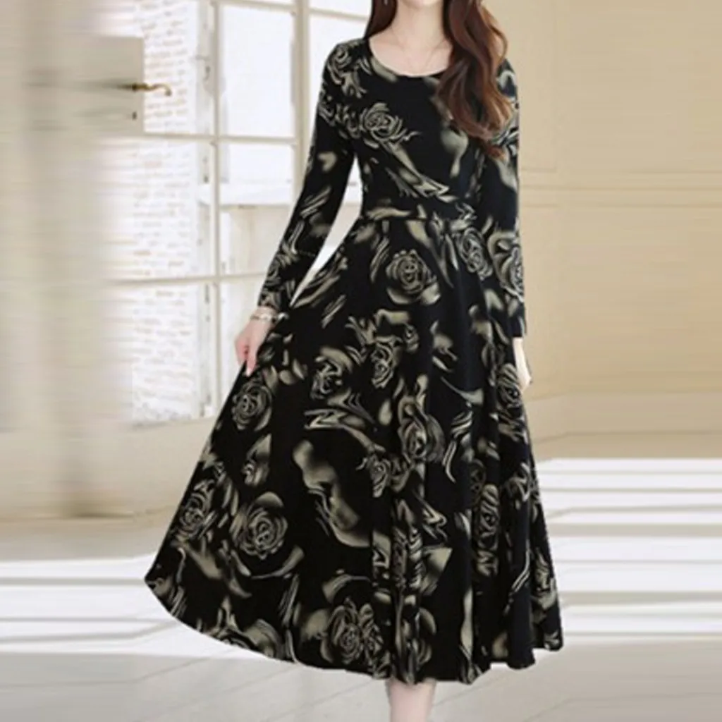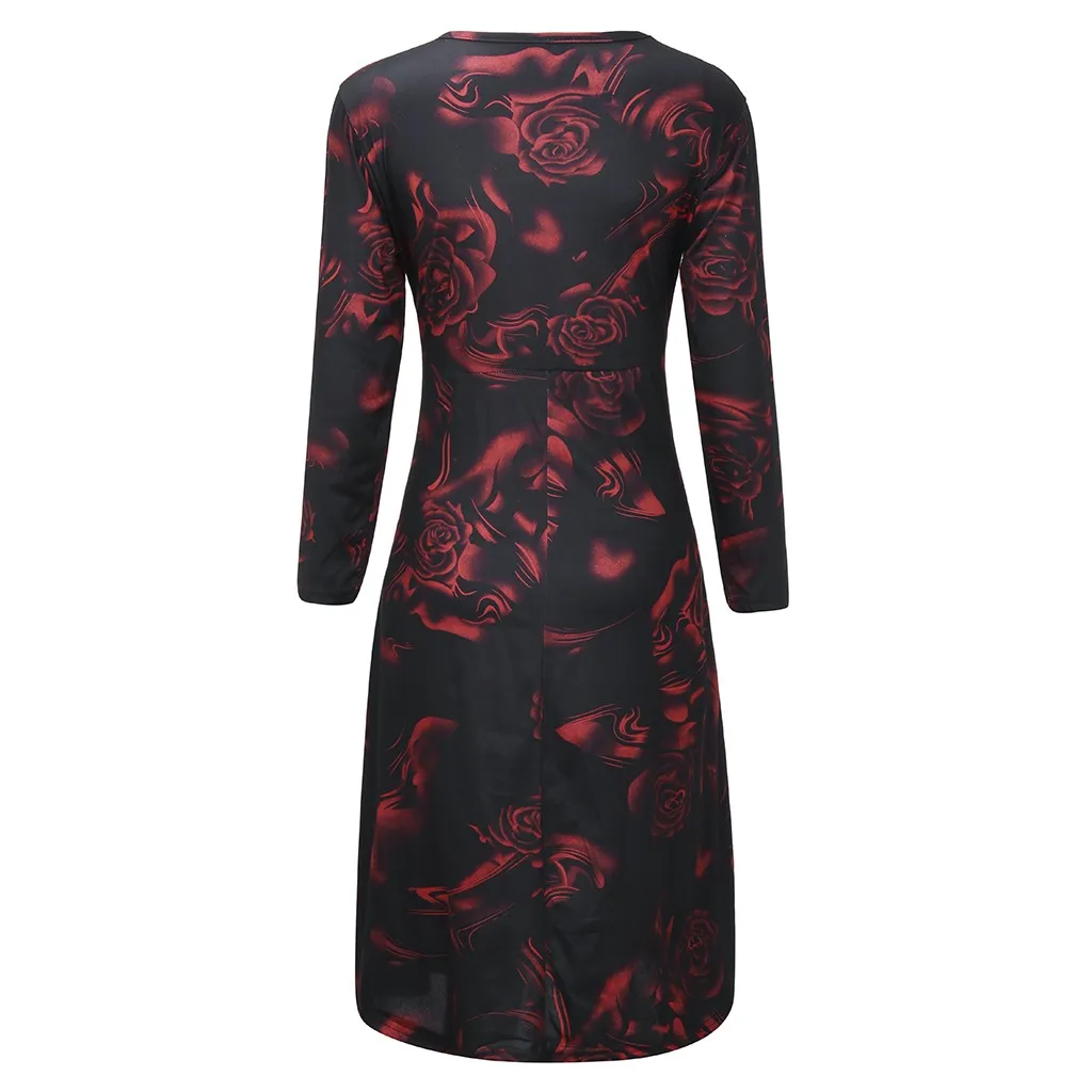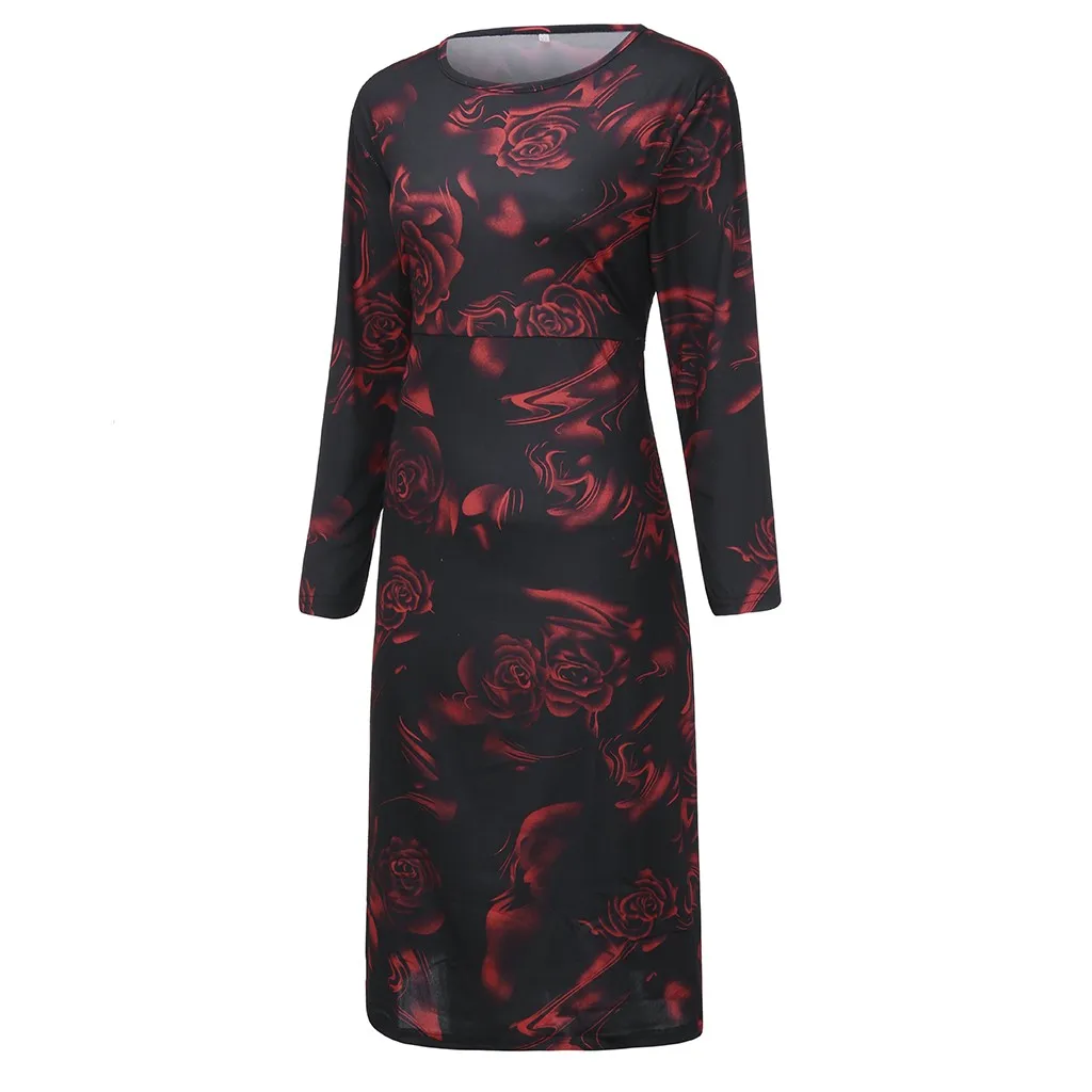 Женское модное элегантное платье до колена с круглым вырезом и длинными рукавами