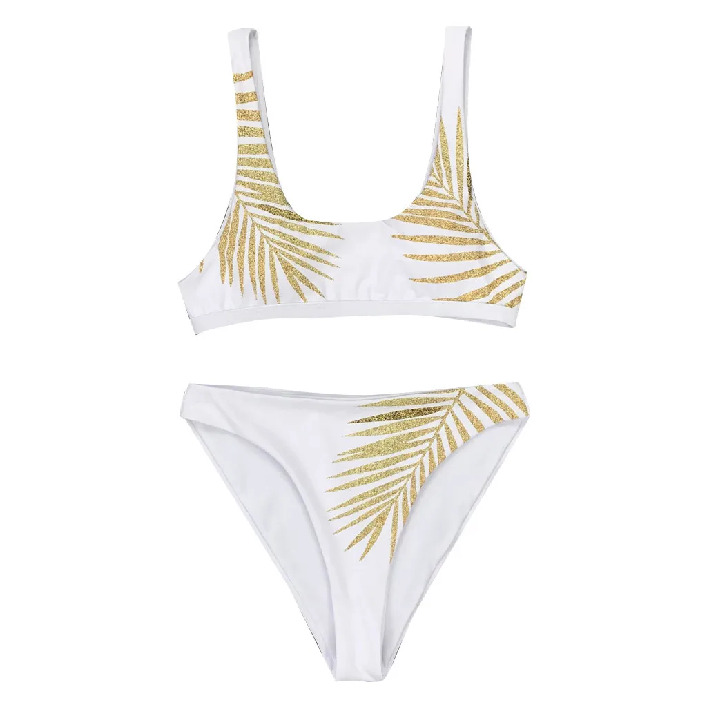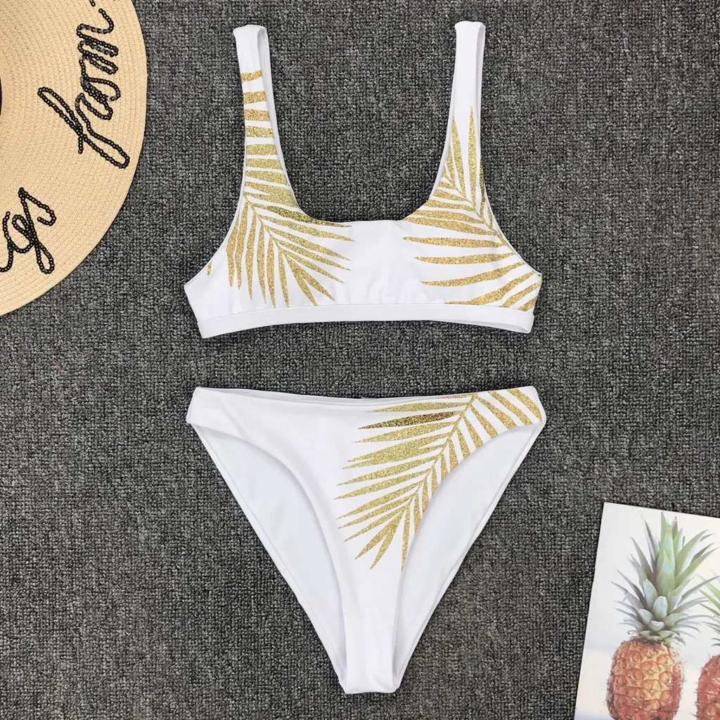 Женский модный купальник с принтом золотого листа