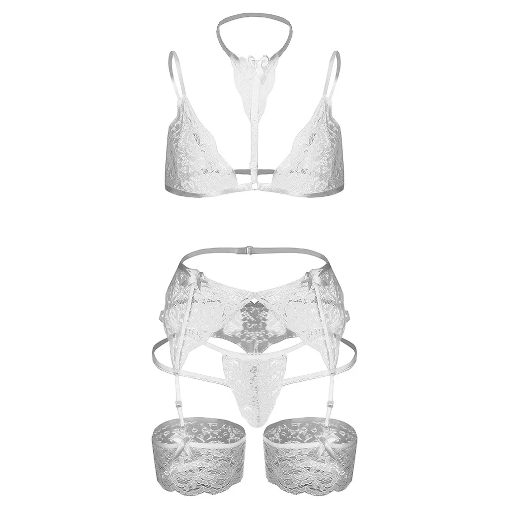 Новинка; Модная пикантная женская обувь; Кружевное нижнее белье, набор нижнего белья с лямкой на шее Беспроводной Лифчики пуш-ап, с бантом на ремешке кольцо на ногу размера плюс нижнее белье для женщин, S-3XL