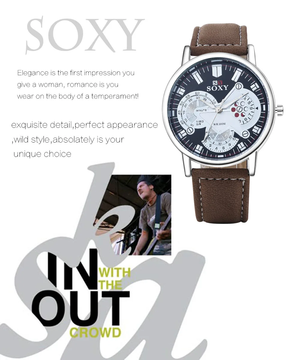 2019 Роскошные модные спортивные часы мужские кожаные кварцевые аналоговые часы повседневные крутые часы SOXY Брендовые мужские часы relogio masculino