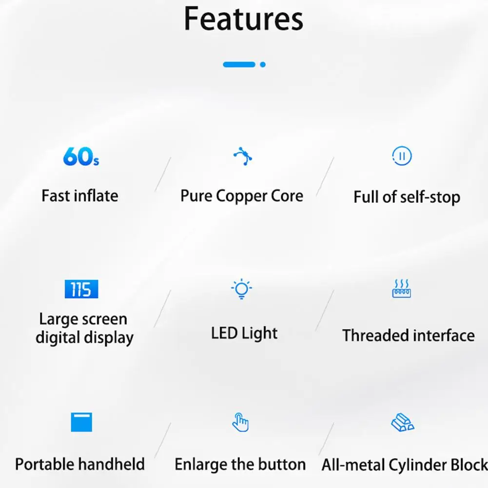 1. Простота в использовании: Просто подключите к прикуривателю автомобиля (источник питания 12 В) для питания. Закрепите Универсальный адаптер над клапаном шины, и вы готовы надуть. Компактный сверхмощный корпус для легкого и портативного.Руководство по эксплуатации * 1
