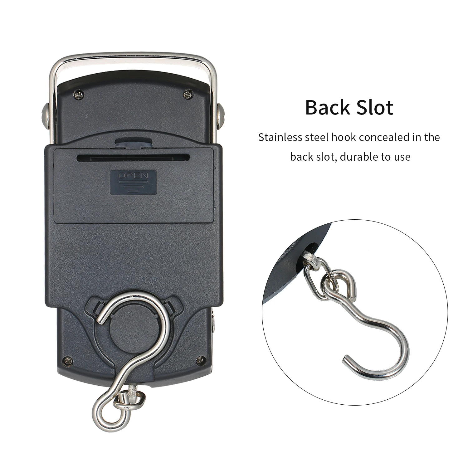 Задняя часть: крючок из нержавеющей стали, скрытый в задней части, удобный в использовании и хранении.
