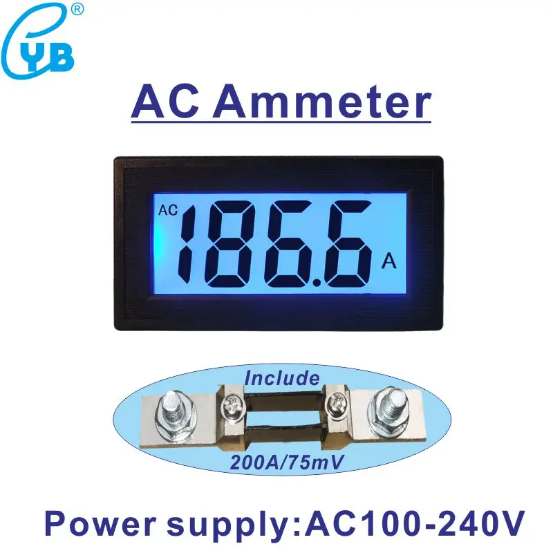 1 шт. * ЖК-Цифровой ток Метр + шунт 200А/75мв