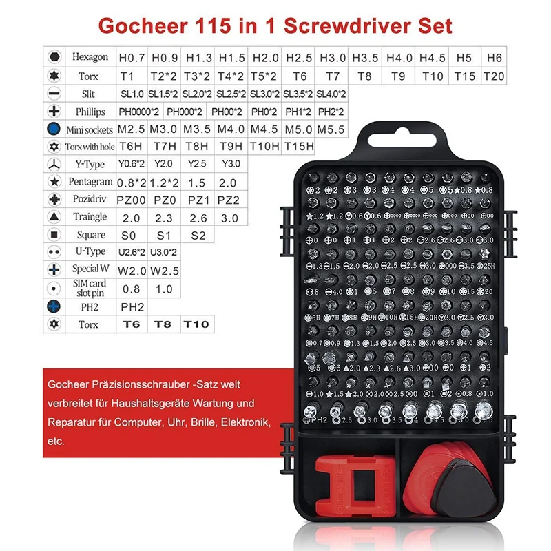 Минимальный набор прецизионных отверток, 115 в 1 Набор отверток с чехол для iPhone, компьютера, ПК, часов, очков, электроники, Mini DI