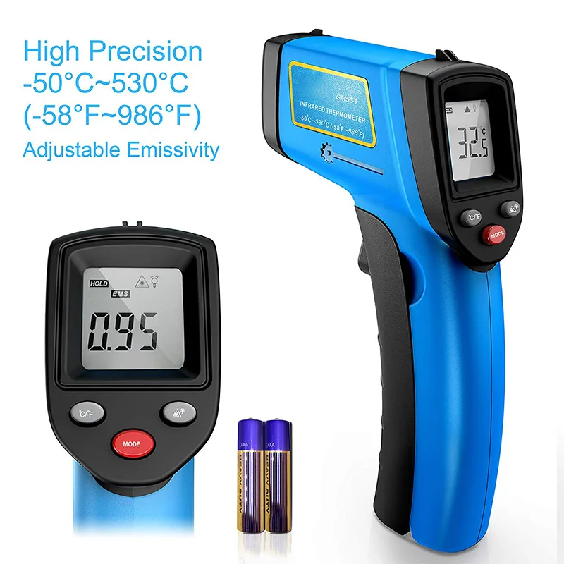 (Бытовые, промышленные широко используются): Диапазон измерения температуры пистолета-50-530 ° C (-58-986 ° F), двигатель, шины, электрооборудование, оборудование для отопления и охлаждения, печи и другие измерения. Измерение температуры горячей воды и масла в жизни, Приготовление барбекю, печь, конфеты, холодильник, воздух, аквариум, бассейн и другое с помощью температурного пистолета