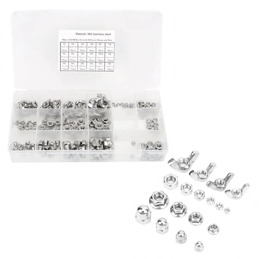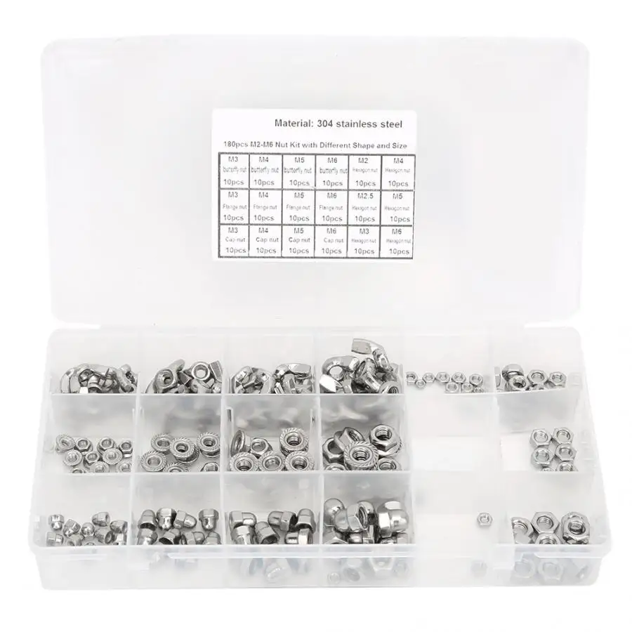 180 шт. Нержавеющая сталь гайки комплект крыло шестигранные гайки фланца M2 M2.5 M3 M5 M6
