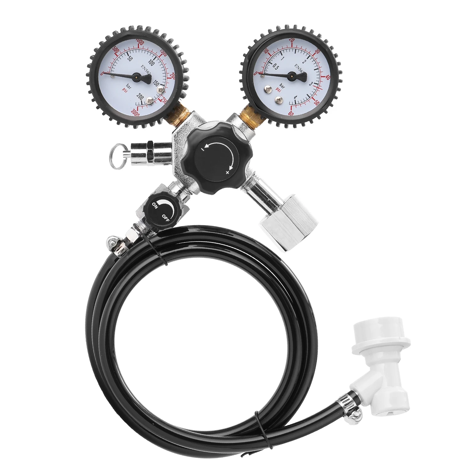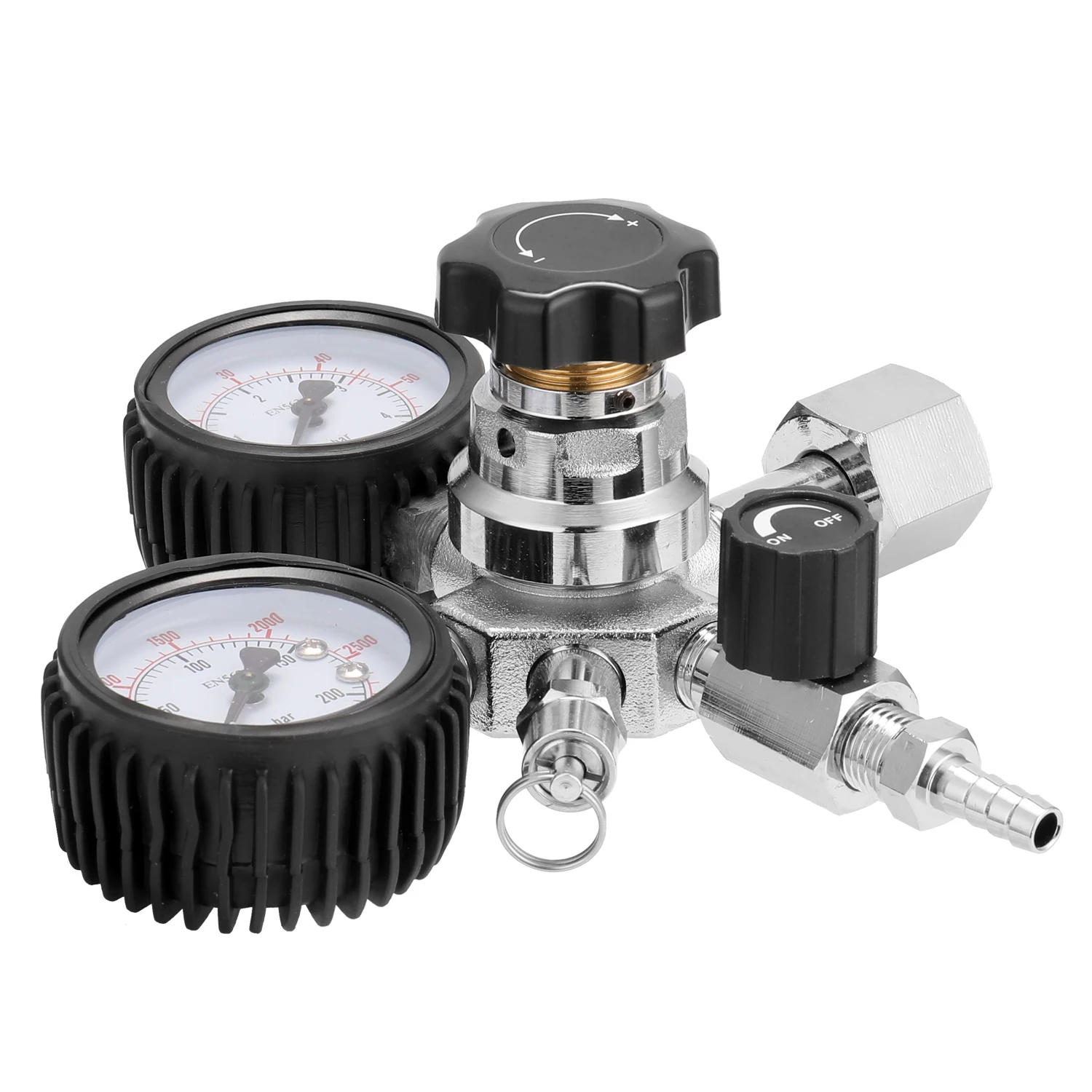 Это своего рода Регулятор СО2 для пива хорошего качества, двойные манометры обеспечивают максимальное удобство и долговечность в оживленных коммерческих условиях, таких как бары, дегустационные залы и рестораны. Один датчик позволяет узнать, сколько давления CO2 находится в бочке и отображает 0-60 psi. Второй Датчик позволяет узнать, сколько CO2 осталось внутри резервуаров CO2 и имеет дисплей 0-3000 PSI. Позволяет оптимизировать настройки для того, что вы распределяете. Вы можете попробовать.