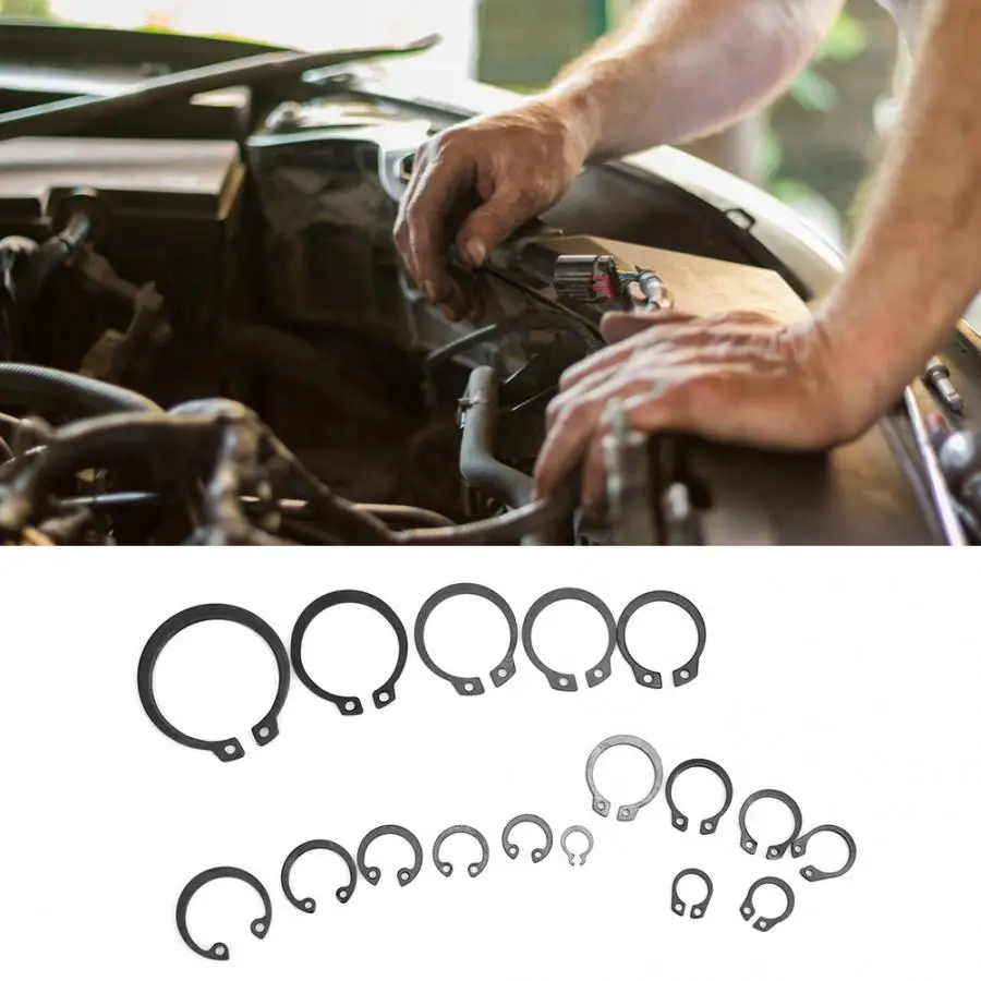 225 шт. C зажим черный чернение углеродистая сталь отверстие вала оснастки кольцо удерживающий комплект пружинных стопорных колец