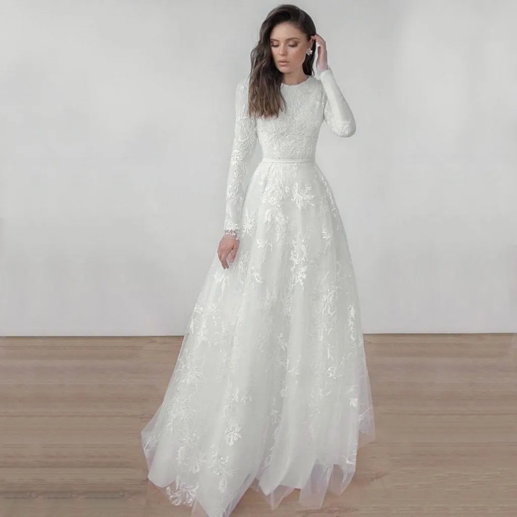 Модная женская Повседневная однотонная майка с круглым вырезом и длинным рукавом, кружевное комбинированное платье