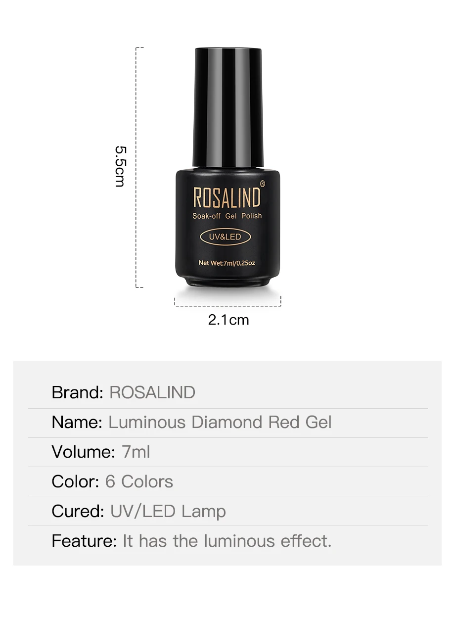 Светящийся Алмазный красный Гель-лак ROSALIND 7 мл, яркий светодиодный/УФ-светильник для дизайна ногтей