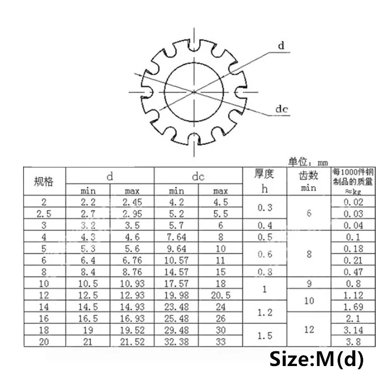 GB862 304 Шайба с замком из нержавеющей стали M3/M4/M5/M6/M8/M10/M12-M20 внешние зубчатые шайбы