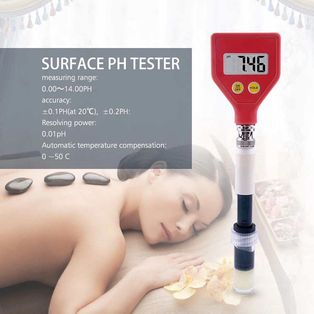 PH98109 ph-тестер поверхности, с помощью плоского электрода, предназначенного для смачивания поверхностей, позволяет легко получить pH-значения. PH значение поверхности может быть обнаружен в течение нескольких секунд Подходит для измерения поверхности, кожи, почвы, кожи, бумаги, эмульсии и других образцов. Диапазон измерения кожи включает в себя волосы и кожу для широкого спектра применения pH