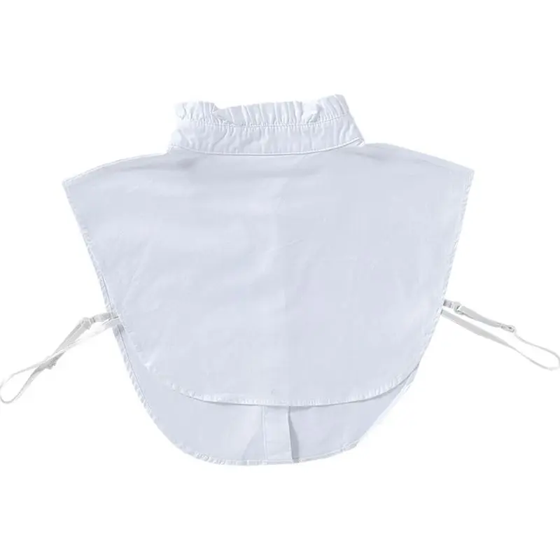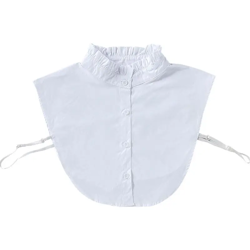 Складывающийся гофрированный воротник-стойка с оборками, однотонный чистый белый цвет, застежка на пуговицах.