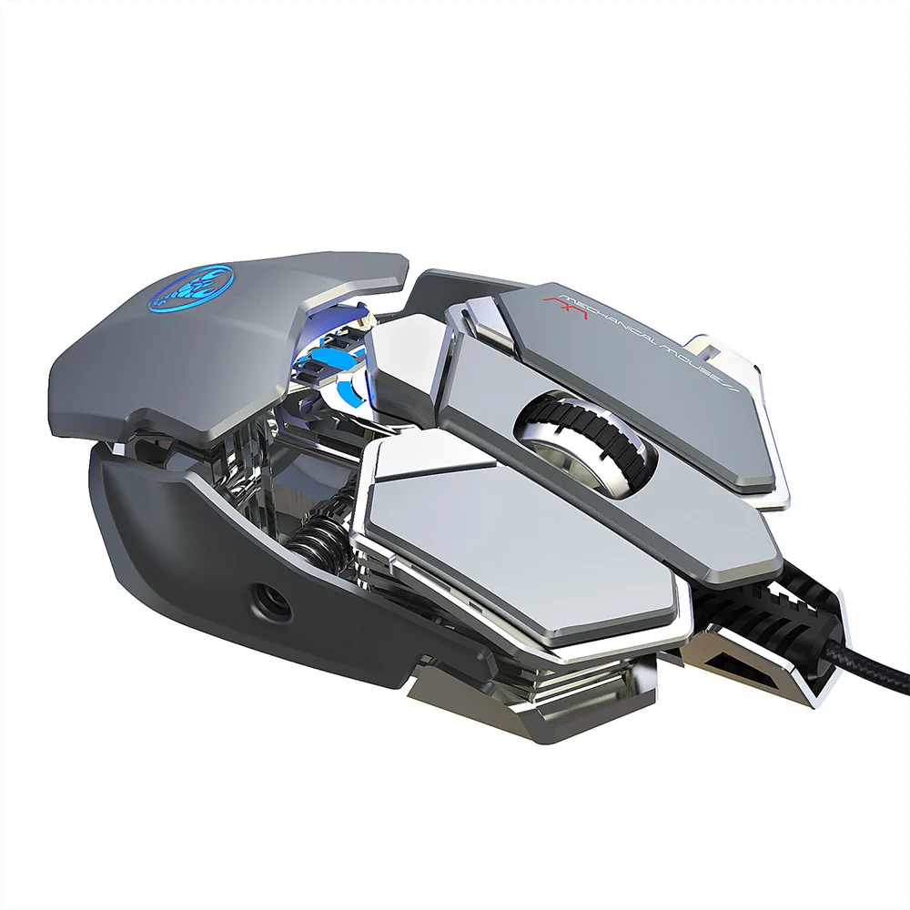 Проводная игровая мышь HXSJ J600 с девятью клавишами, макро программирующая мышь с шестью регулируемыми DPI, Цветной RGB светильник, серый эффект