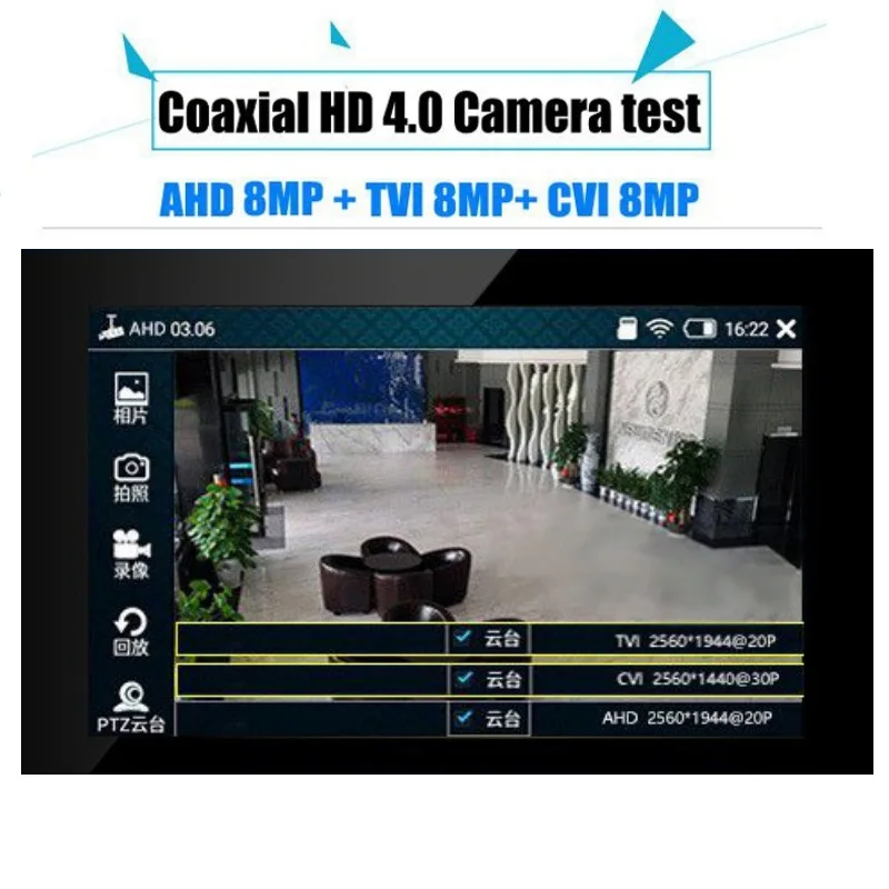 ◆4-дюймовый ips сенсорный экран, разрешение 800*480 ◆8MP TVI, 8MP CVI, 8MP AHD Тест камеры ◆H. 265/H.264, 4 K видео дисплей через основной ◆Двойной тест venster, IP и аналог камеры тест ◆CVBS en ptz-besturing ◆HD coaxiale видео sinaal kwaliteit ◆Быстрый ONVIF, авто видео bekijken en creøren testen rapport ◆Hik тестовый инструмент, hikvision камера, тест изображения, может изменить имя пользователя, пароль и параметры IP
