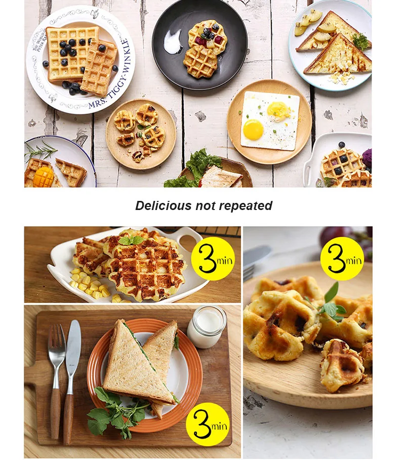 220V электрическая машина для производства сэндвич с Кухня многофункциональная машина для завтрака Двусторонняя Отопление вафельный, тем самым позволяя зернам раскрыться 2 противня