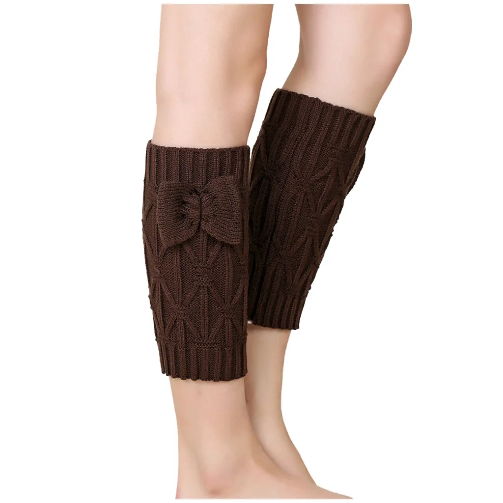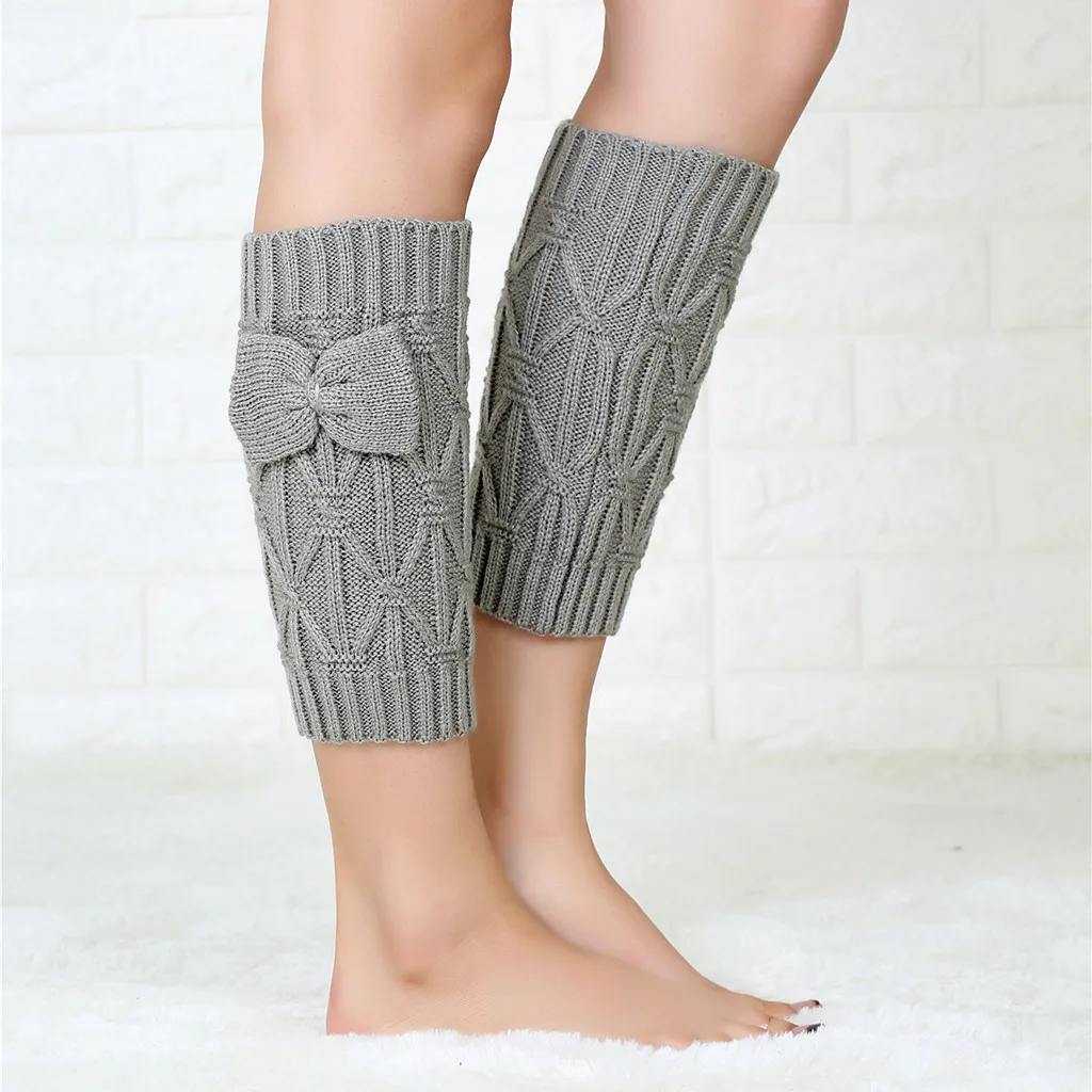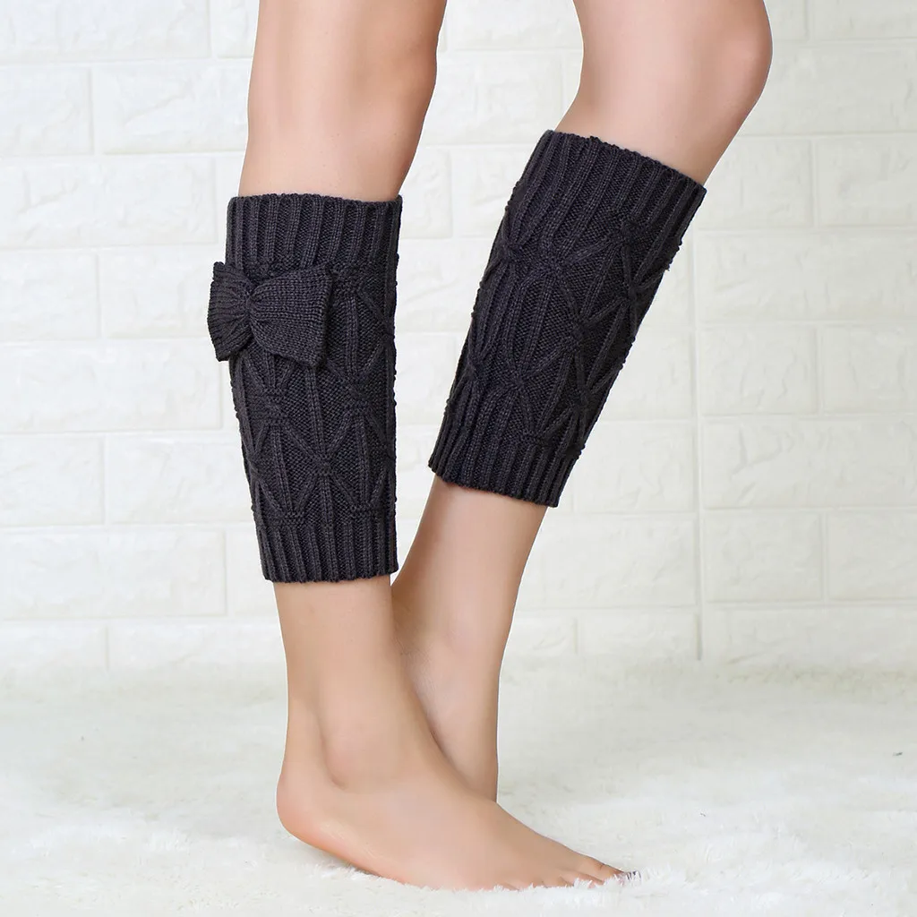 Женские однотонные шерстяные длинные носки с бантом, вязаные носки