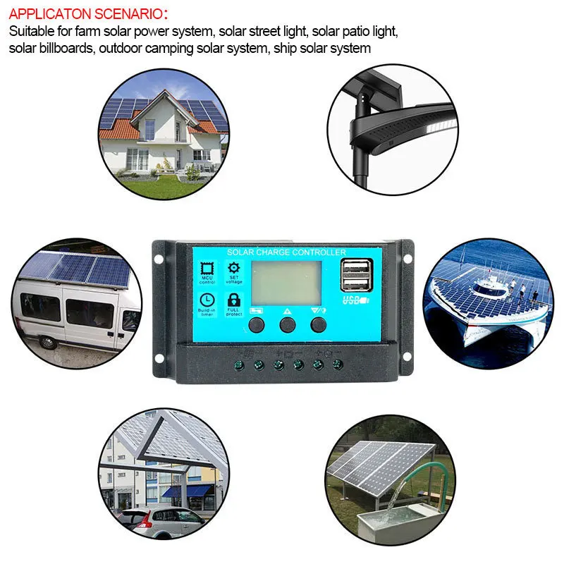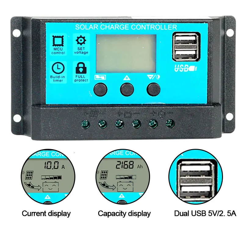 60 A / 50 / th / 30th / 20a / 10a Авто de 12 V 24 V Солнечный зарядный контроллер ШИМ Солнечный зарядный контроллер LCD двойной USB 5 V от солнечной панели РЕГУЛЯТОР дома