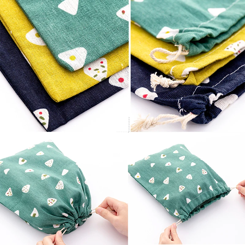 Eco многоразовая Повседневная Льняная сумка для покупок с рисовым шаром и кулиской