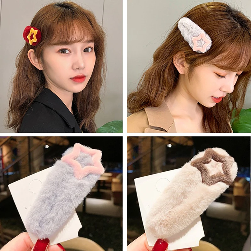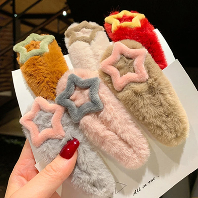 Милые зимние мягкие плюшевые заколки для волос для женщин и девочек