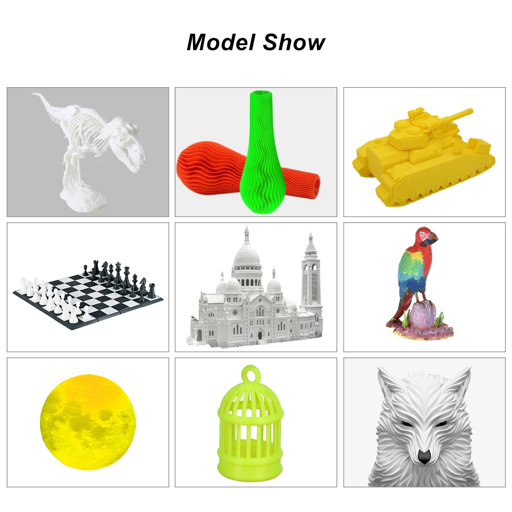 220*220*300 мм размер печати для того, чтобы удовлетворить различные требования для печати, поддержка различных 1,75 мм печати, такими как PLA,ABS, ТПУ, дерево, градиент Цвет и т. д.(PLA рекомендуем).