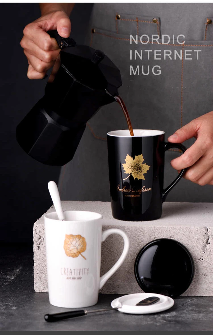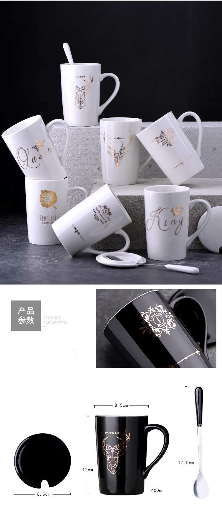 Простая Классическая черно-белая кофейная кружка в скандинавском стиле с индивидуальным рисунком креативные керамические кружки ложка с крышкой парные чайные чашки