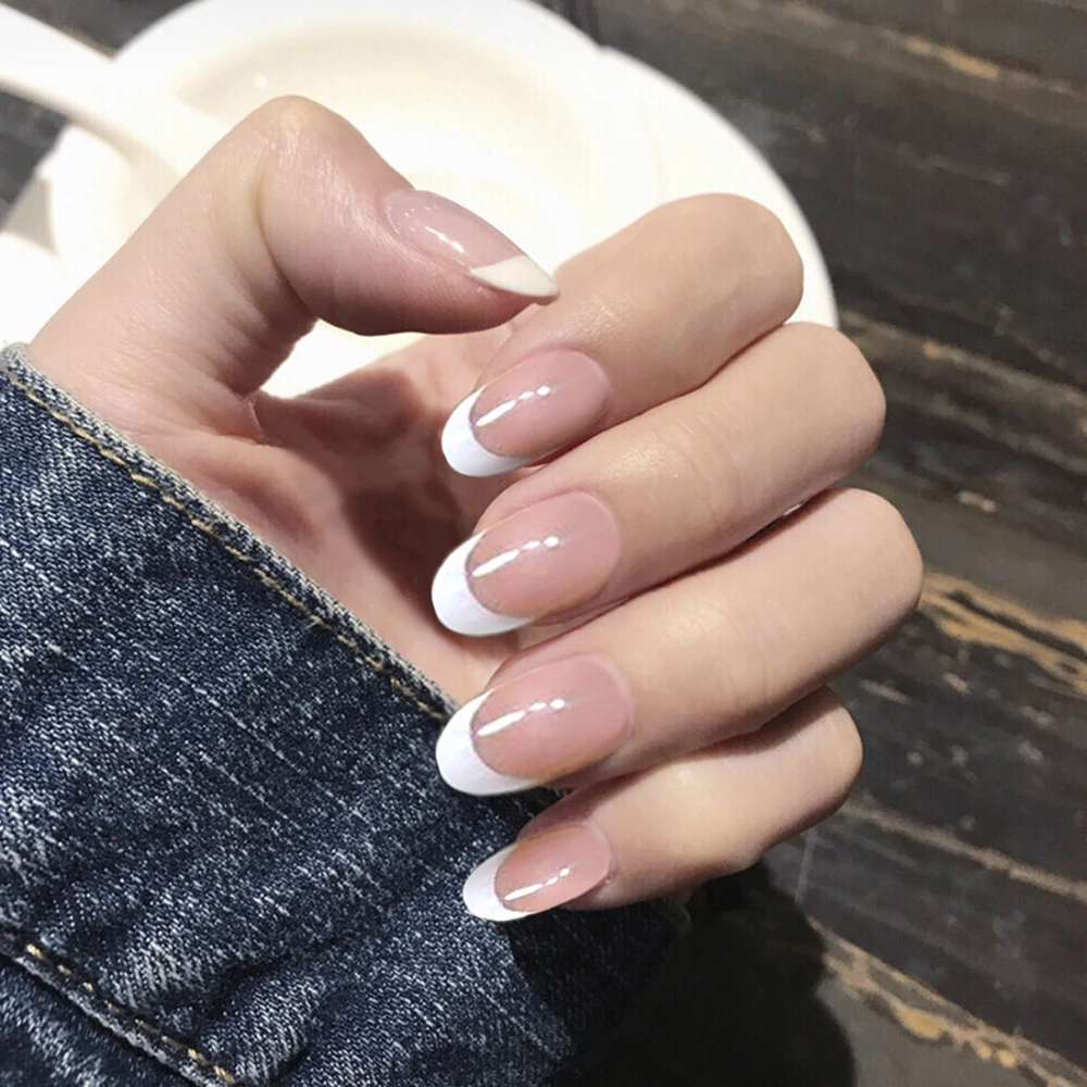 24 шт. натуральные накладные ногти нажмите на прозрачный Блестящий узор короткие овальные искусственные ногти с клеем французский стиль накладные ногти