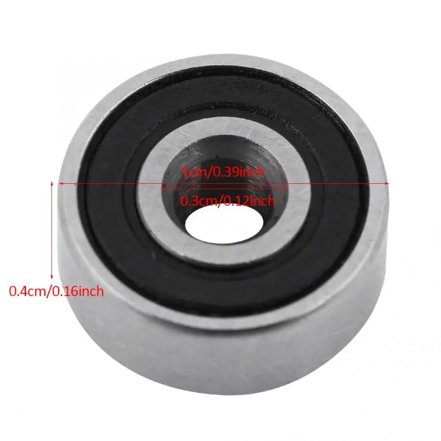 Эти миниатюрные подшипники изготовлены из высококачественной стали для низкого уровня шума и длительного срока службы. Они являются двойными резиновыми герметичными, чтобы избежать попадания загрязнений и сохранения смазки. Подшипники имеют внутренний диаметр a3мм, наружный диаметр 10 мм и толщину 4 мм. Они отлично подходят для 3 мм валов/стержней, таких как механическое оборудование, электрические инструменты, игрушки.