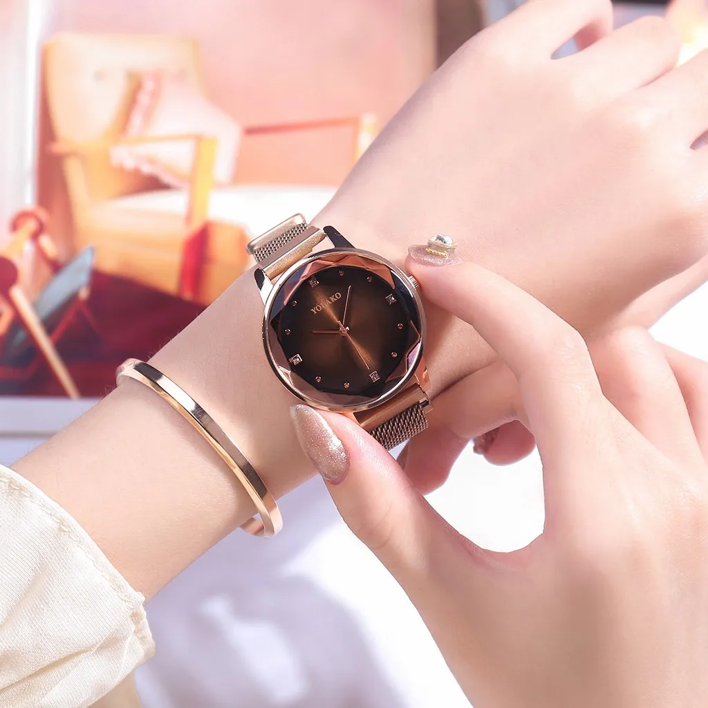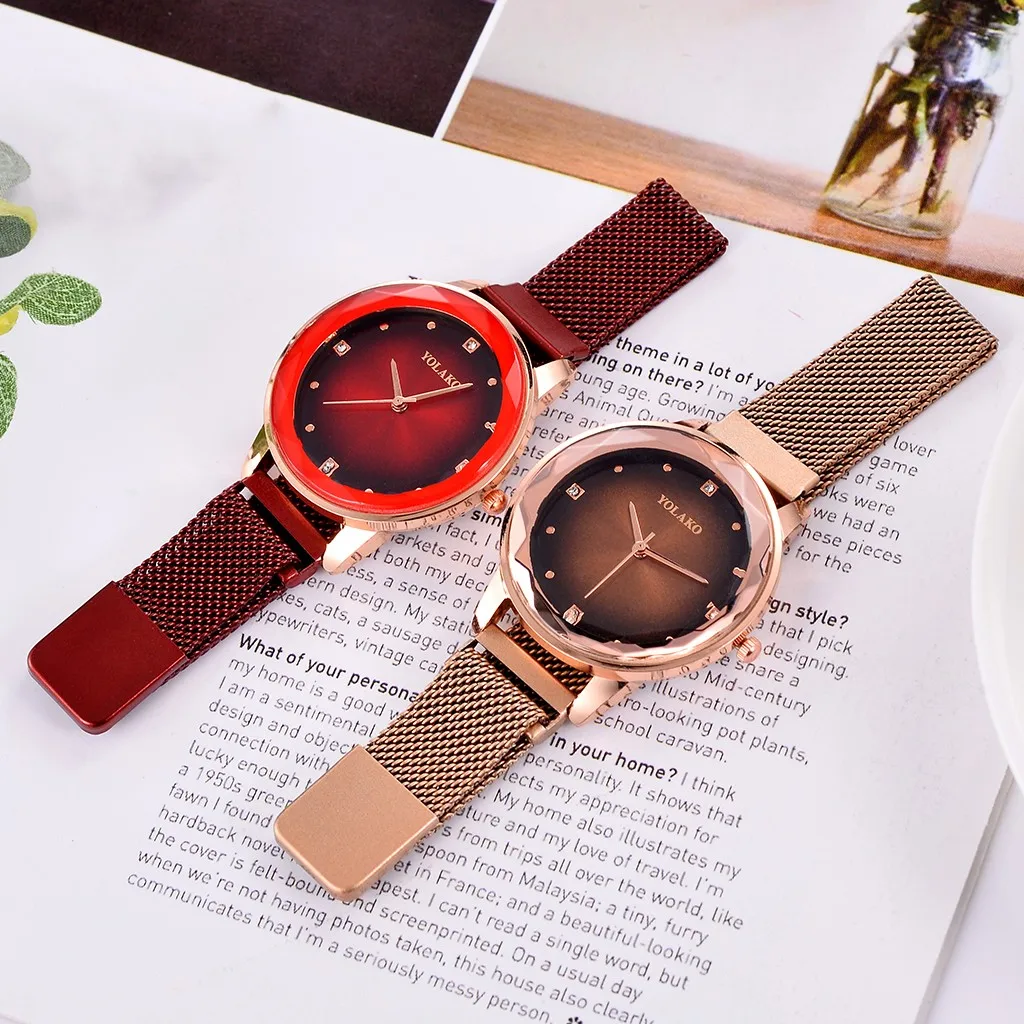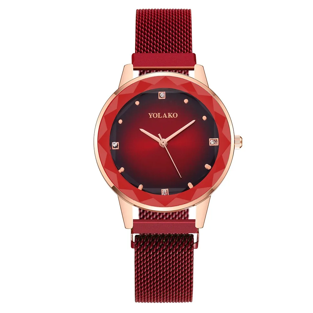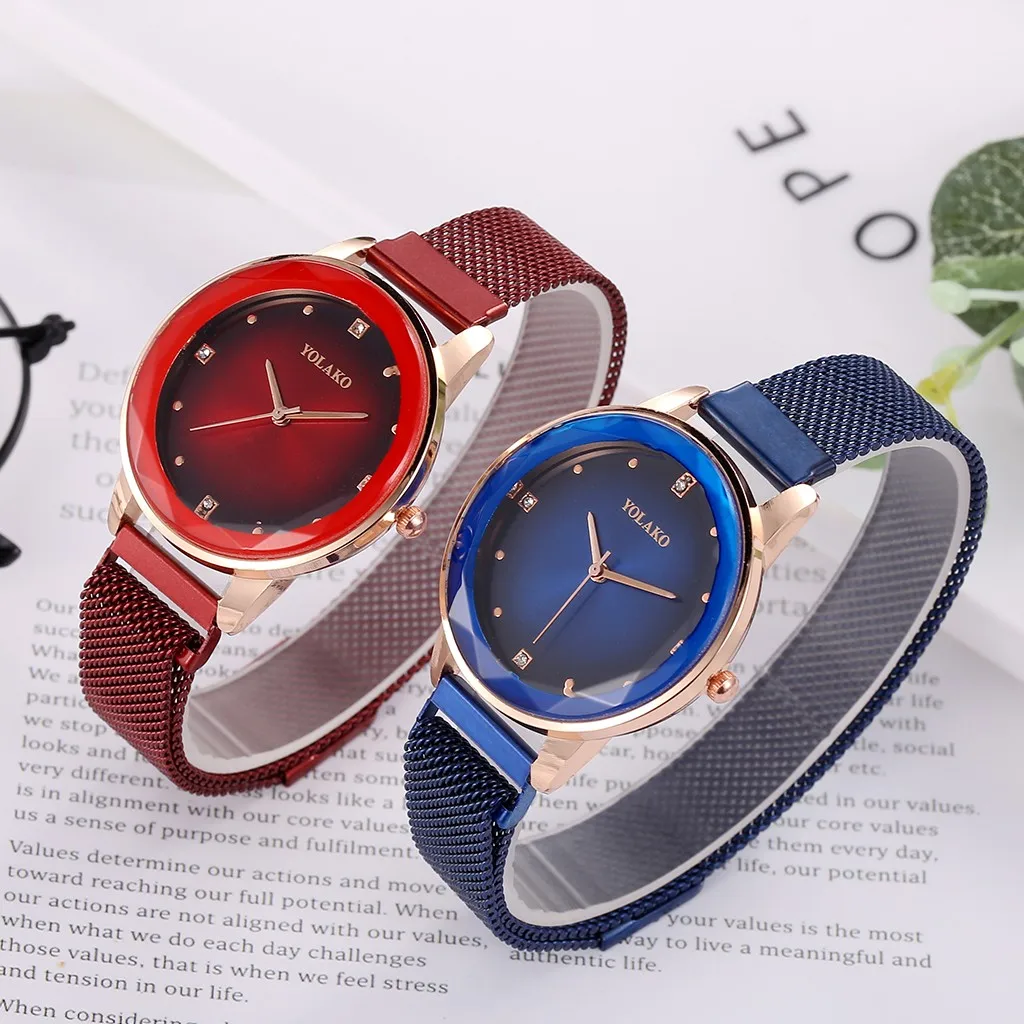 YOLAKO, модные женские часы, женские часы с магнитной пряжкой, нержавеющая сталь, кварцевые наручные часы, часы для женщин, reloj mujer montre