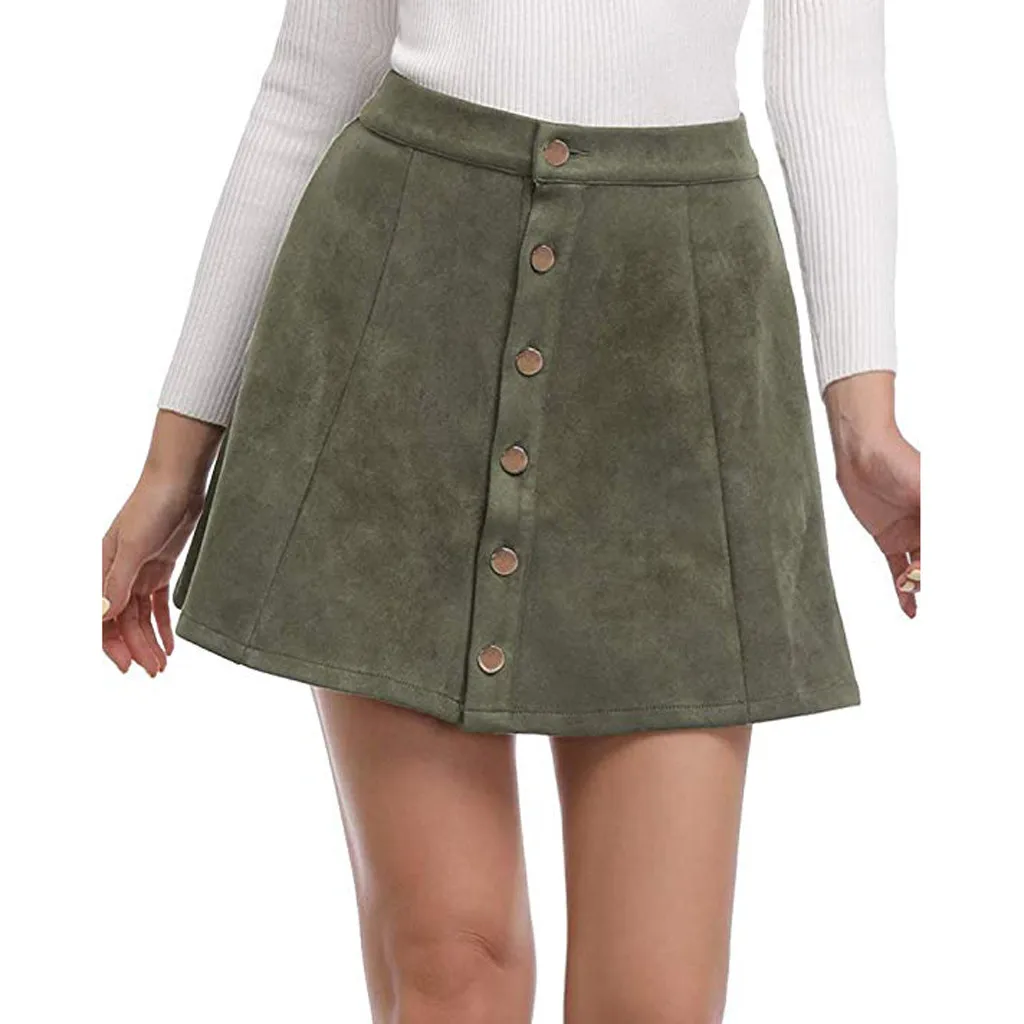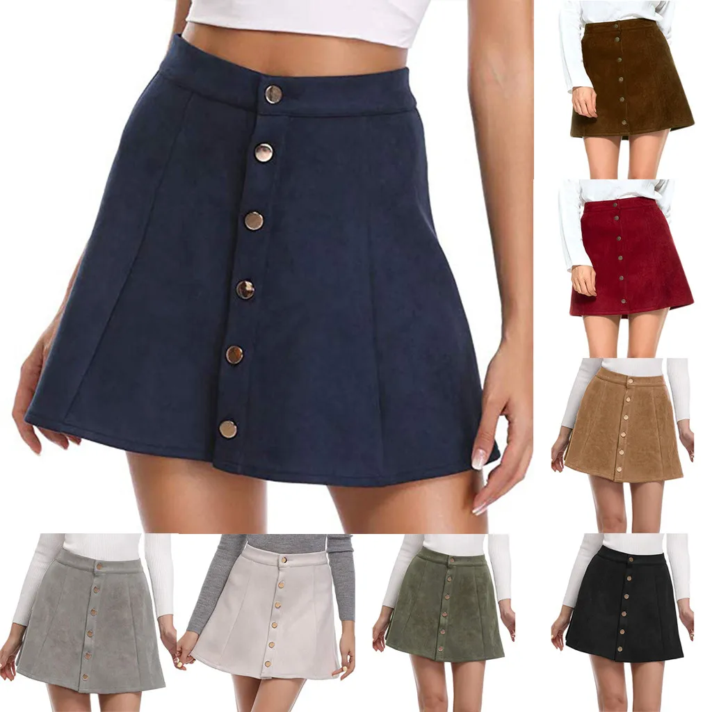 Женская рождественская юбка, однотонная винтажная короткая мини-юбка трапециевидной формы на пуговицах с высокой талией 2020, Лидер продаж