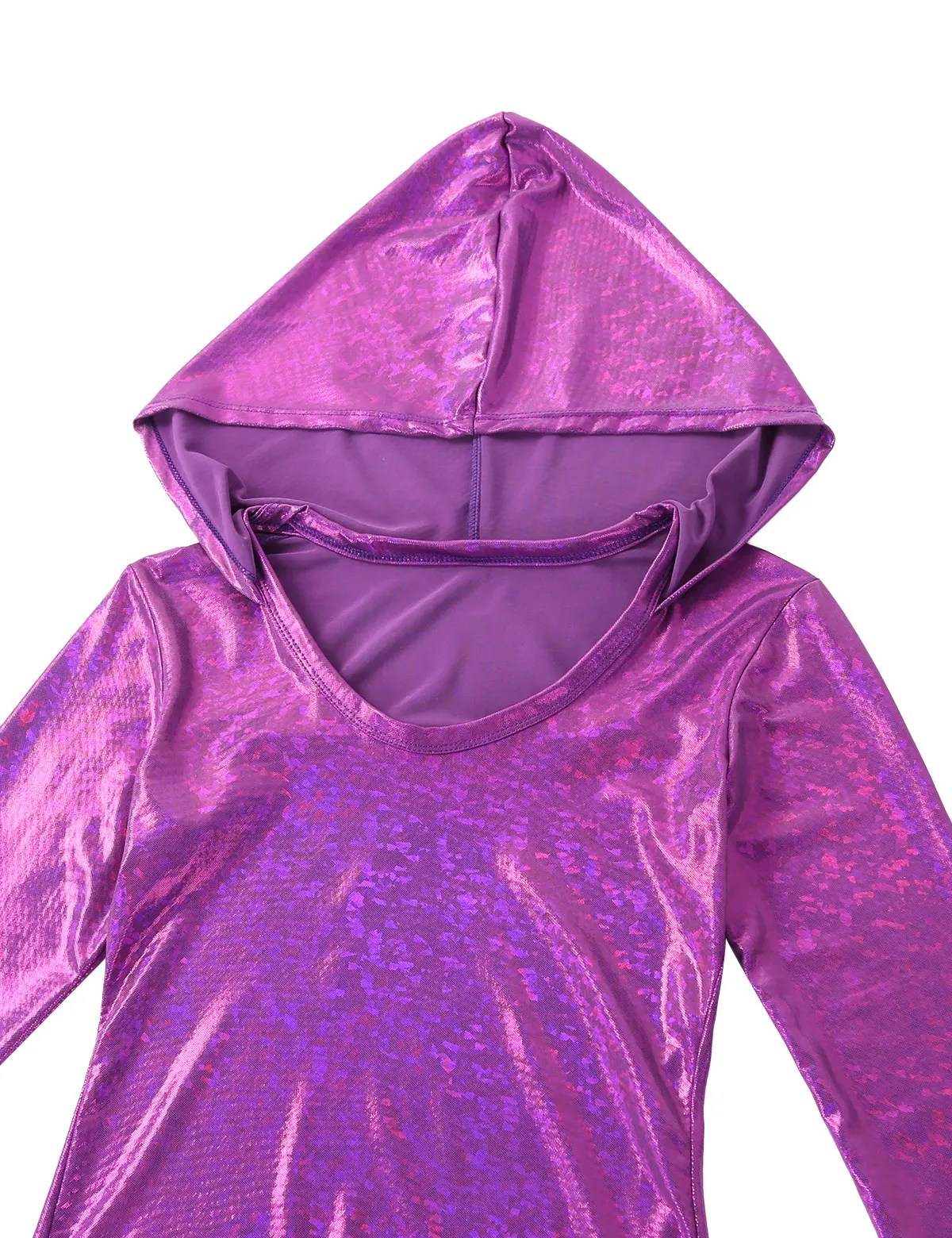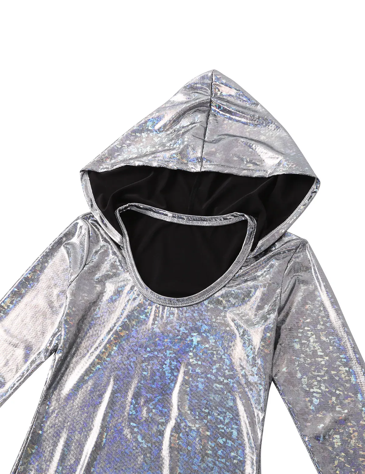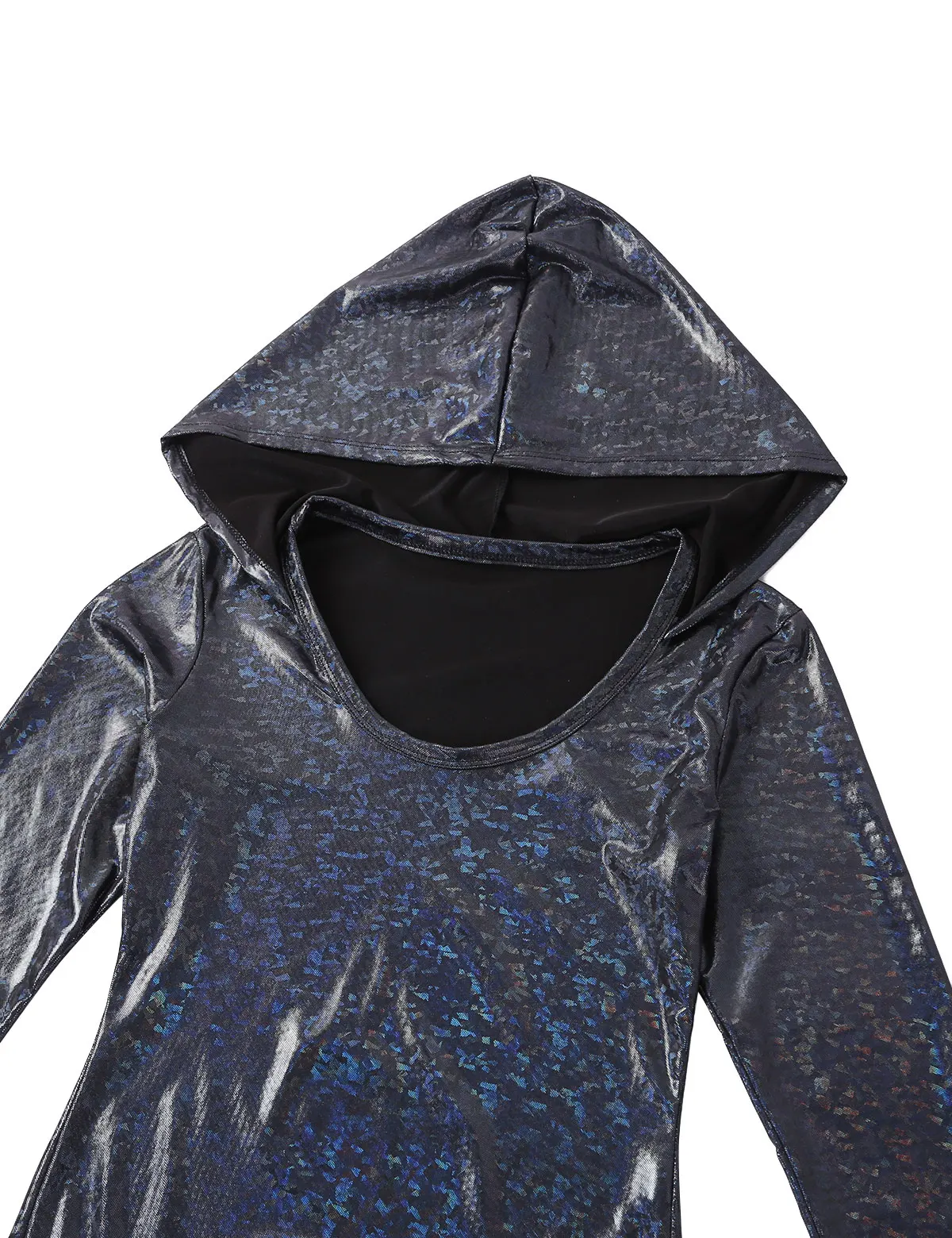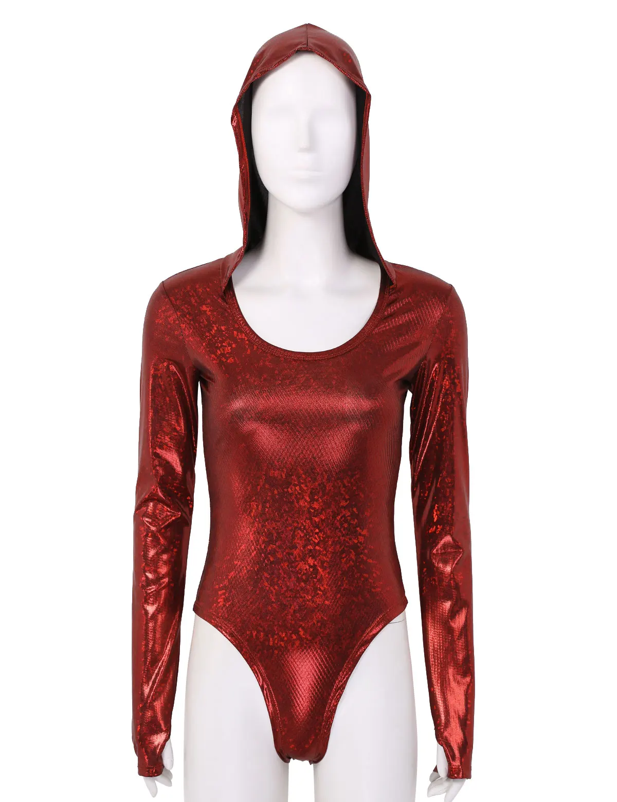Женский цельный Блестящий металлический комбинезон с капюшоном, мерцающий и сверкающий светильник.
