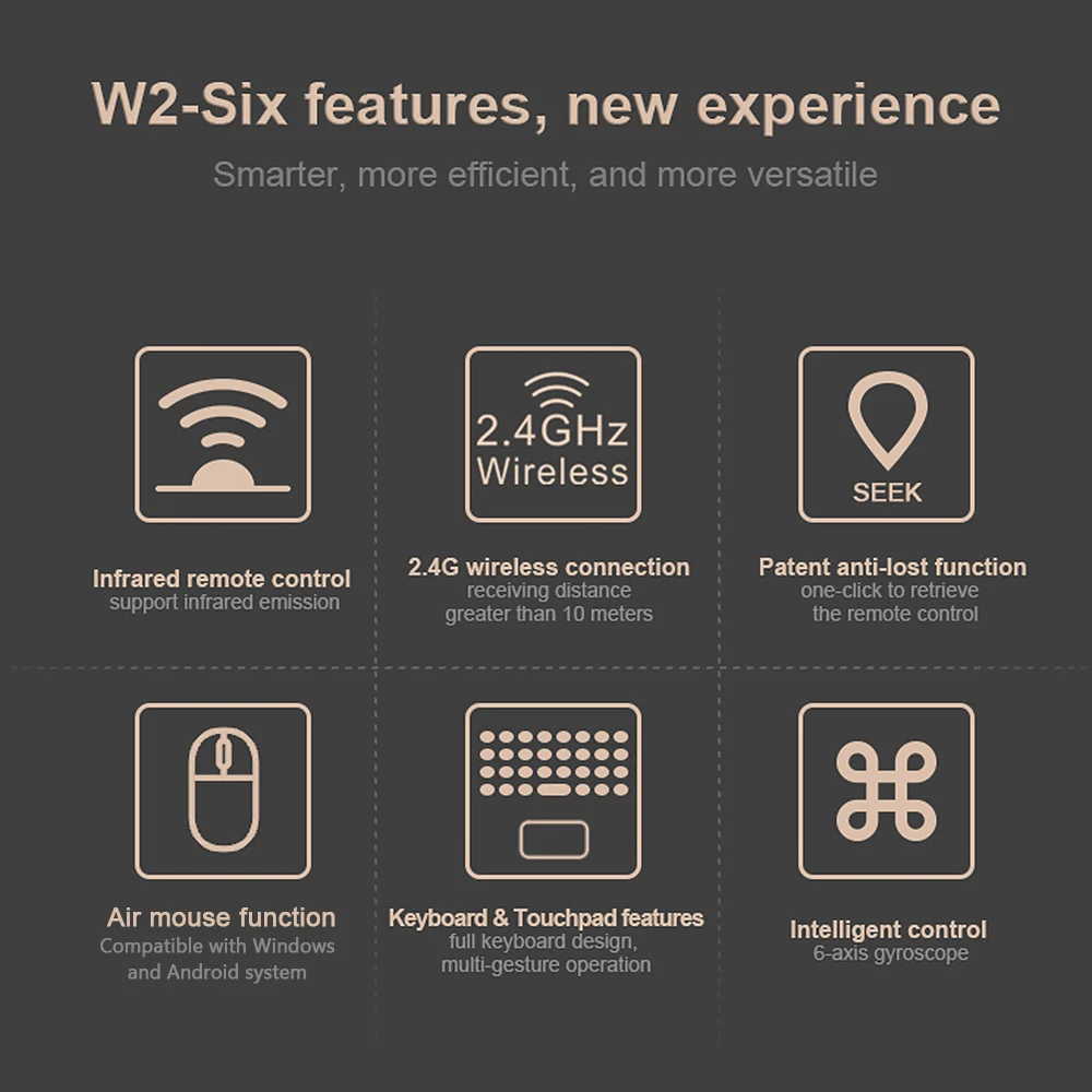 * Функция защиты от потери. Поддержка голосового ввода. Совместимость с Android, Windows и Linux. Подходит для HTPC, smart TV, Android TV box, ноутбука, проектора и так далее.