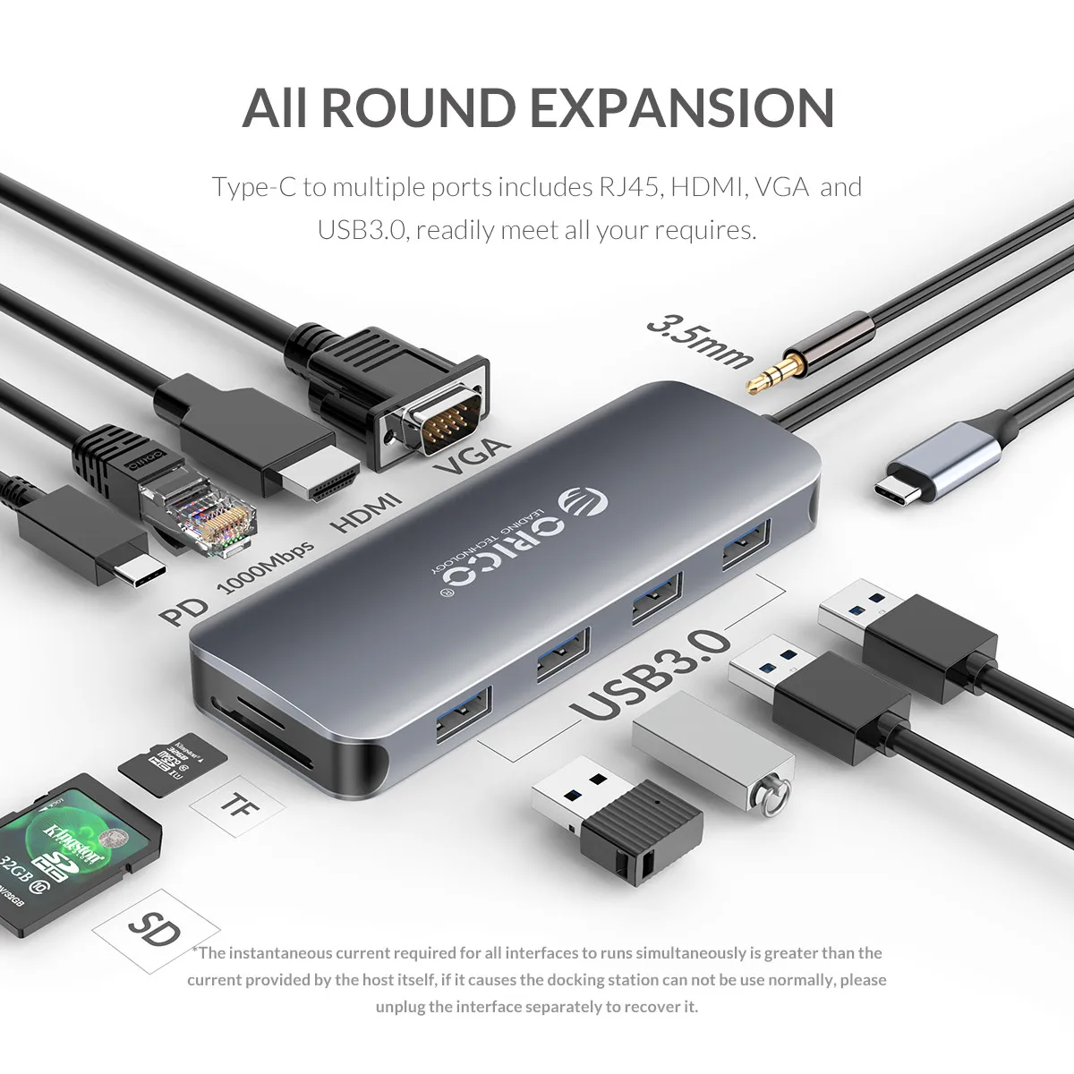 ORICO 11 в 1 TYPE-C док-станция предназначен для ноутбука расширения с интерфейс type-C