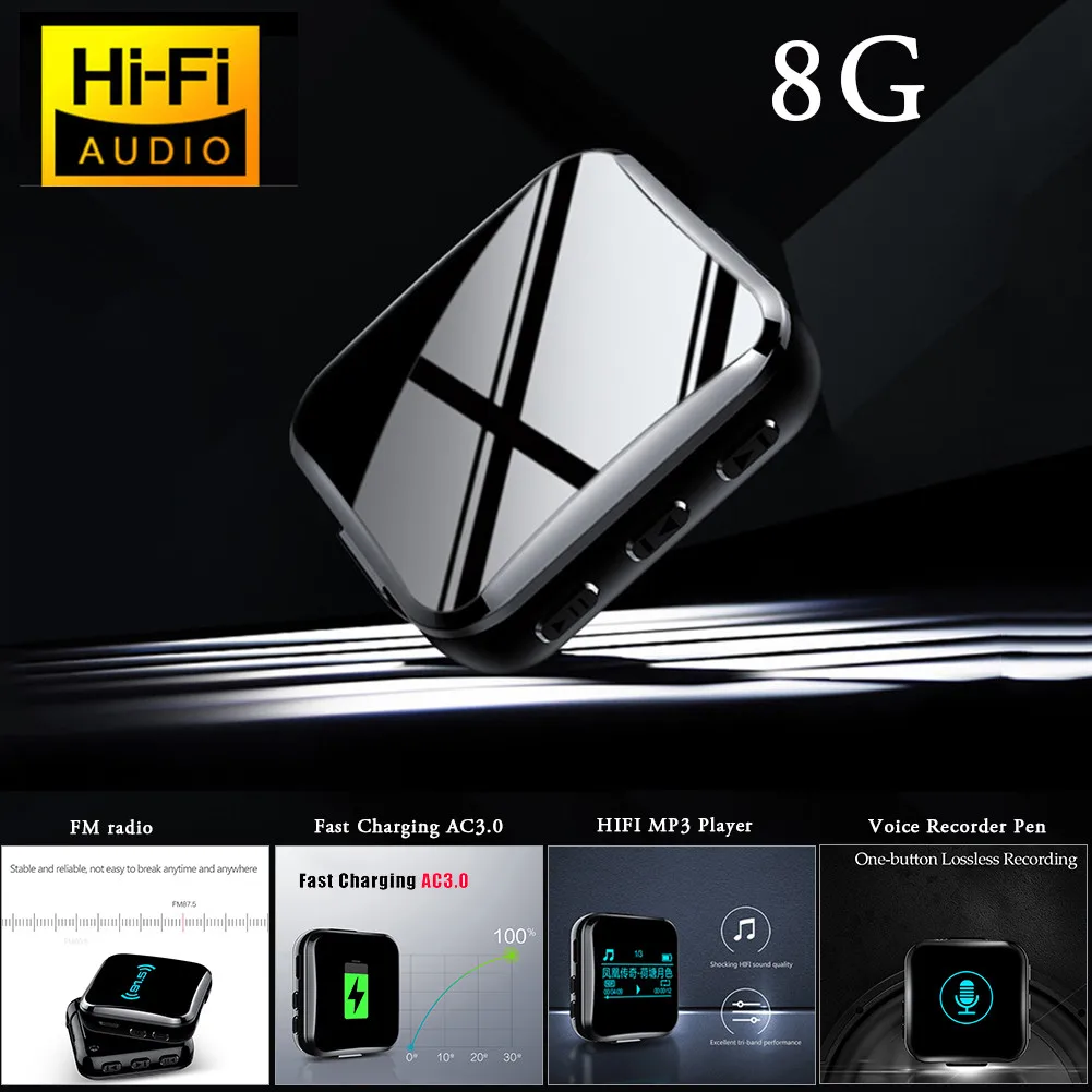 Bluetooth DSD MP3-плеер 8 ГБ, спортивный MP3 музыкальный плеер с Hi-Fi аудио FM радио Поддержка OTG электронная книга