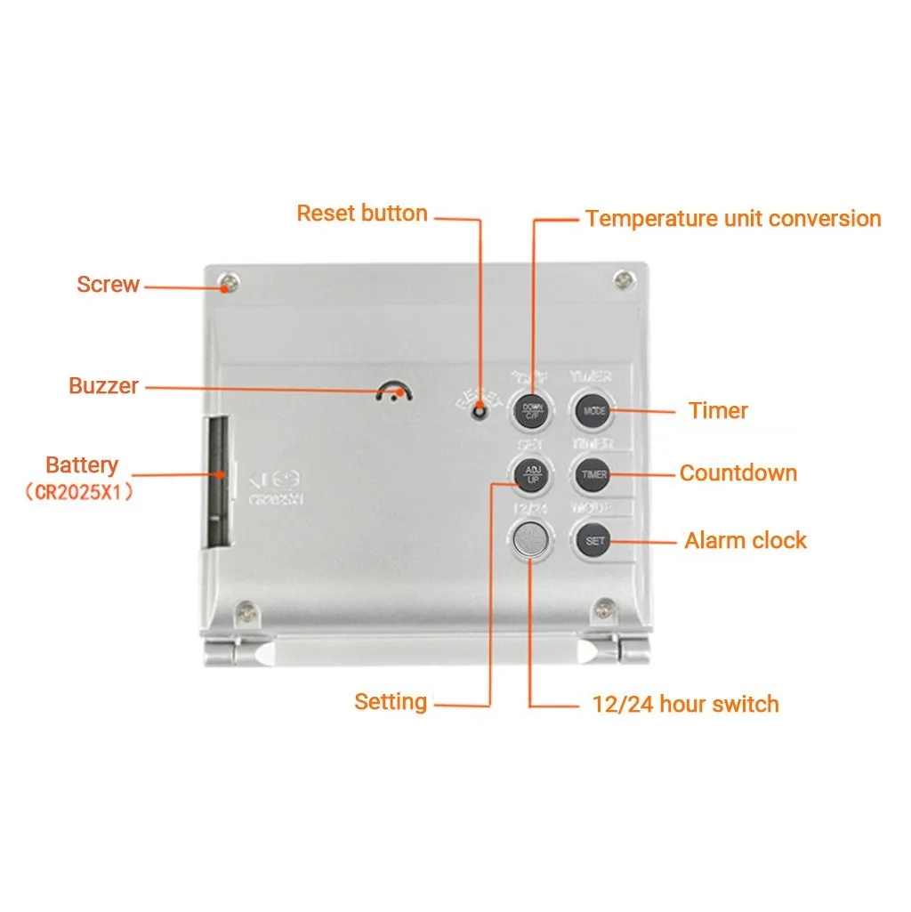 Встроенный термометр и комната Дисплей температуры, таймер обратного отсчета хронографа.