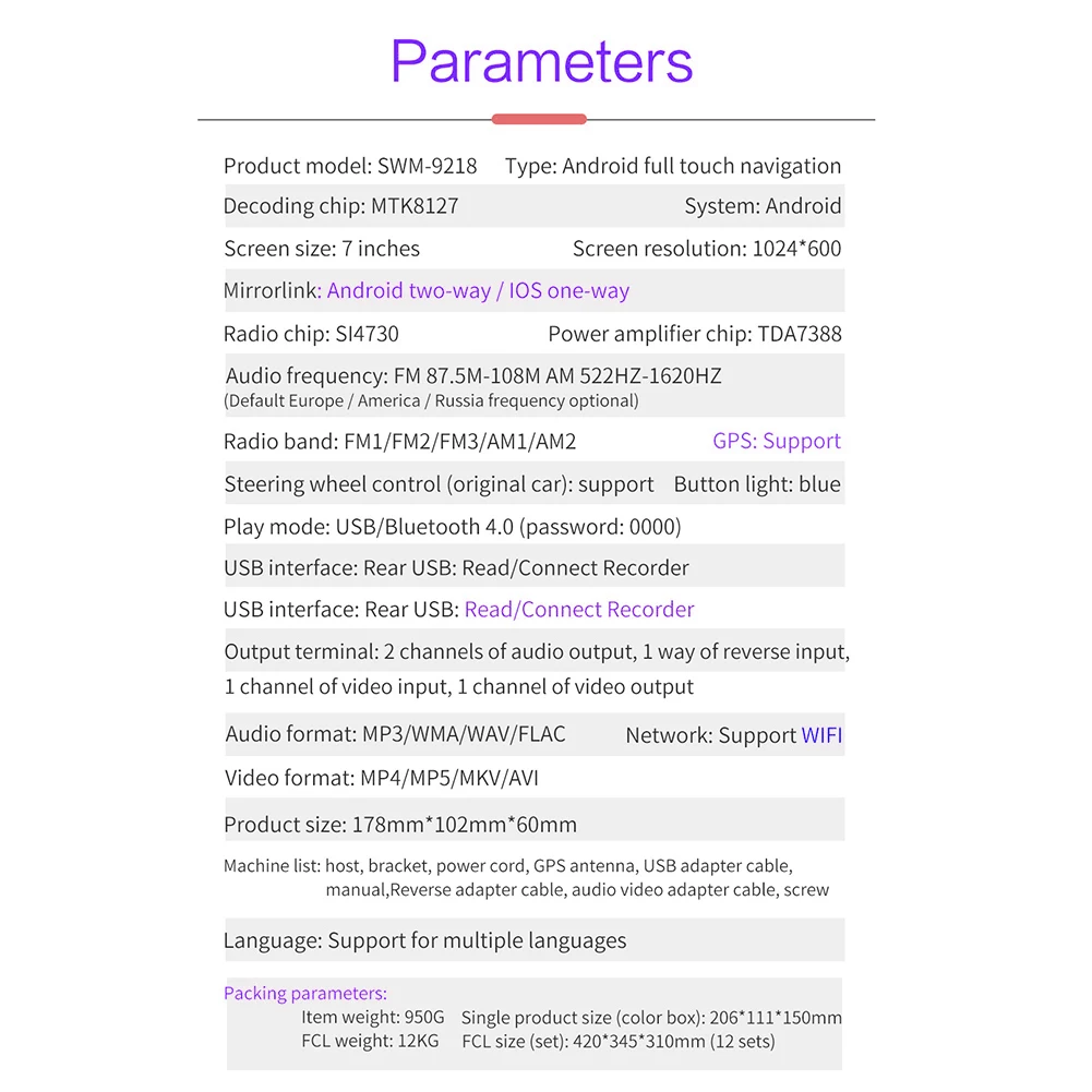 Аудио Частота: FM 87,5 M-108 M AM 522HZ-1620HZ (по умолчанию Европа/Америка/Россия частота опционально)