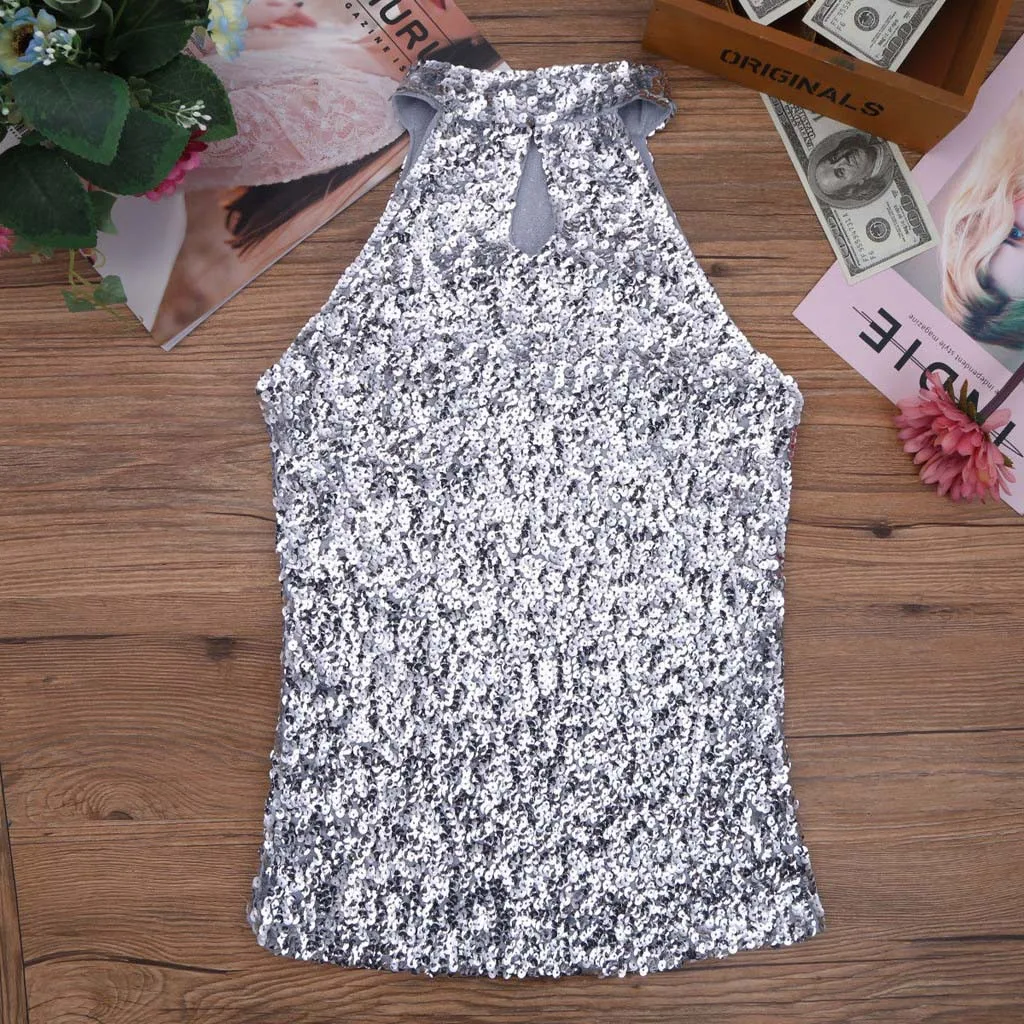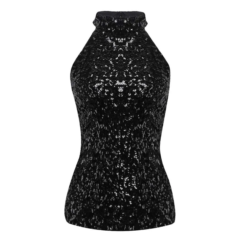 Женский топ на бретелях, блестящий топ на бретелях с блестками, женский сексуальный Блестящий жилет с v-образным вырезом, Клубная одежда, вечерние майки, Ropa Muje
