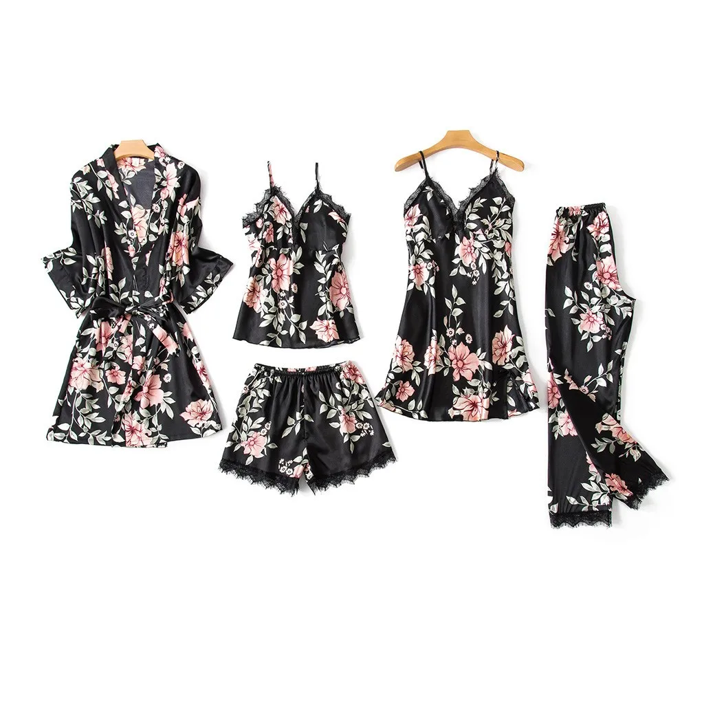 5 шт. пикантная женская обувь на шнуровке pajanas атласная ночная банный халат; Банный брюки нижнее белье-шорты комплект пижам для девочек размера плюс, одежда для сна, S-3XL