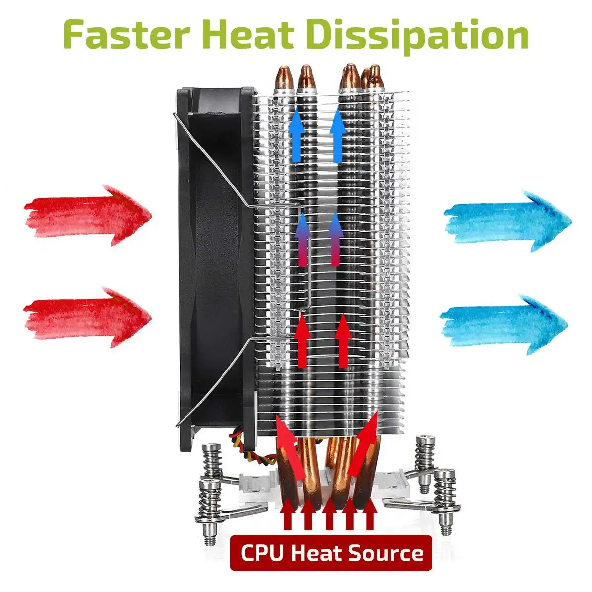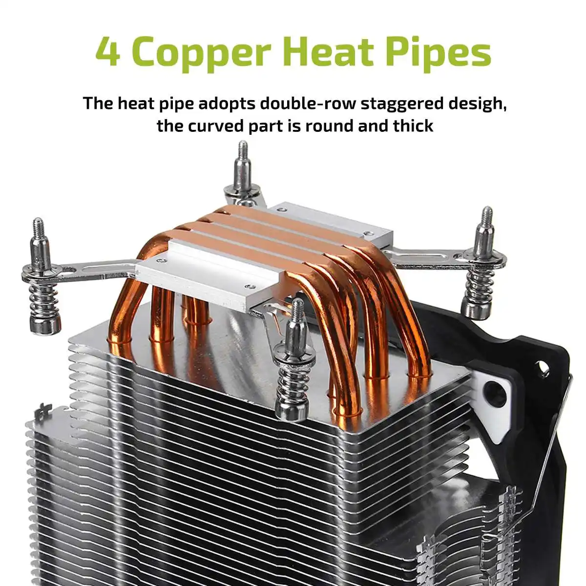 -4 тепловые трубы из чистой меди, технология износа плавников. Тепловая труба имеет двухрядный шахматный дизайн, изогнутая часть круглая и толстая, а верхний процесс спекания изысканный.