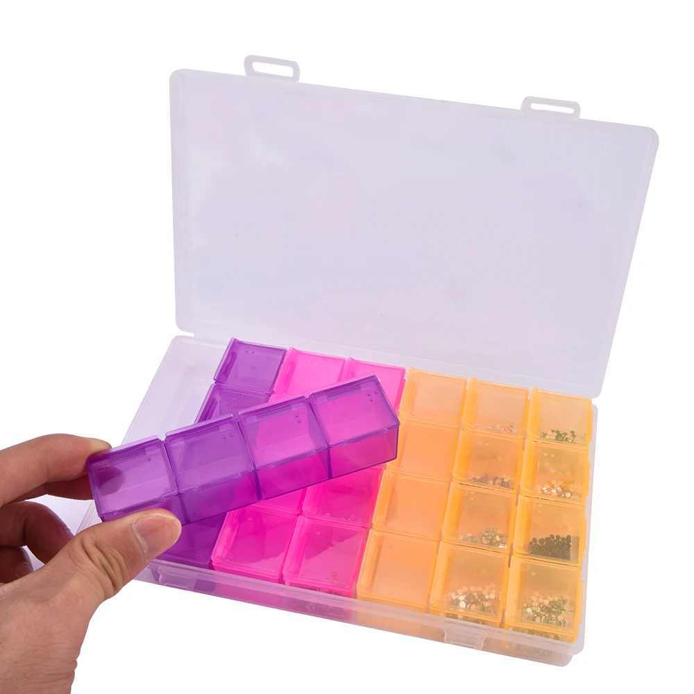 Небольшие сетки упакованы в одну большую коробку, он может обеспечить ваши продукты с двойным уплотнением и защитить их от пыли или ржавчины, защелкивающаяся Пряжка делает коробку более плотной и крепкой. Его можно использовать в качестве коробки для хранения аксессуаров для алмазной вышивки, сережек для хранения, ожерелья, бусин, аксессуаров для дизайна ногтей, кольца для пальцев, небольших украшений или рыболовного крючка. Двойное уплотнение коробки: небольшие сетки упакованы в большую коробку, он может обеспечить ваши материалы с двойным уплотнением и защитить их от пыли или ржавчины, защелкивающаяся Пряжка делает коробку более плотной и крепкой. В комплект входят 2 предмета, которые напечатали 1-28 цифр, и 2 штуки 28 пустых пастеров.
