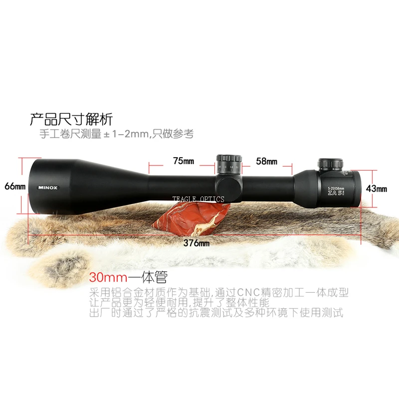 Фабрика улучшила MINOX 5-25X56 SFIR, регулировка инкрементов составляет 1/4 МОА не 1/10 мил. Пожалуйста, обратите больше внимания.