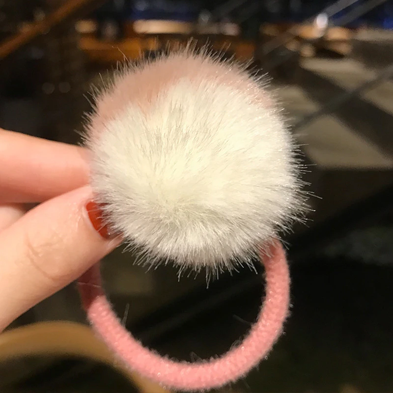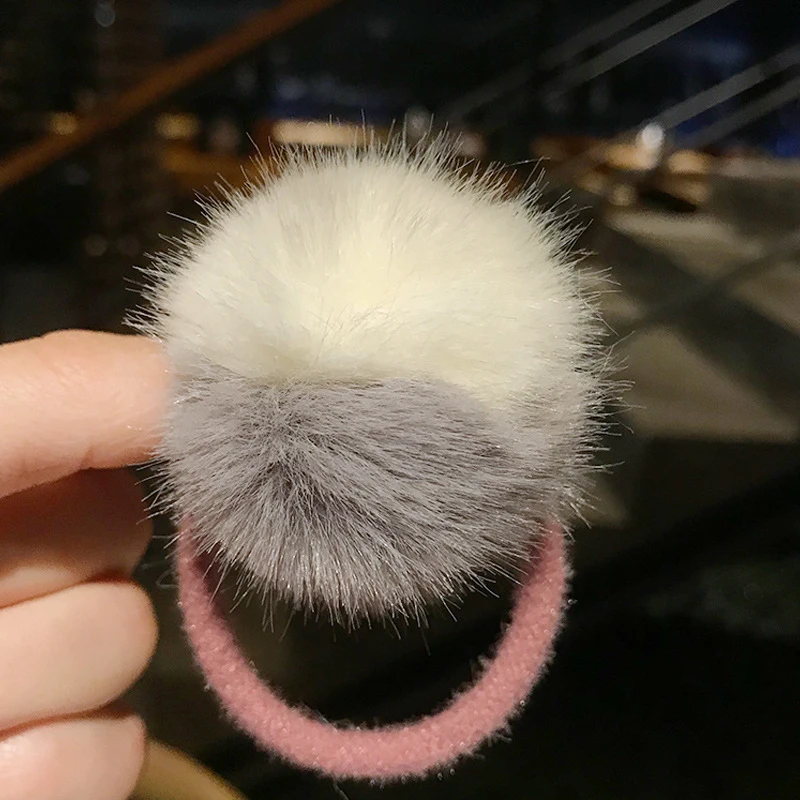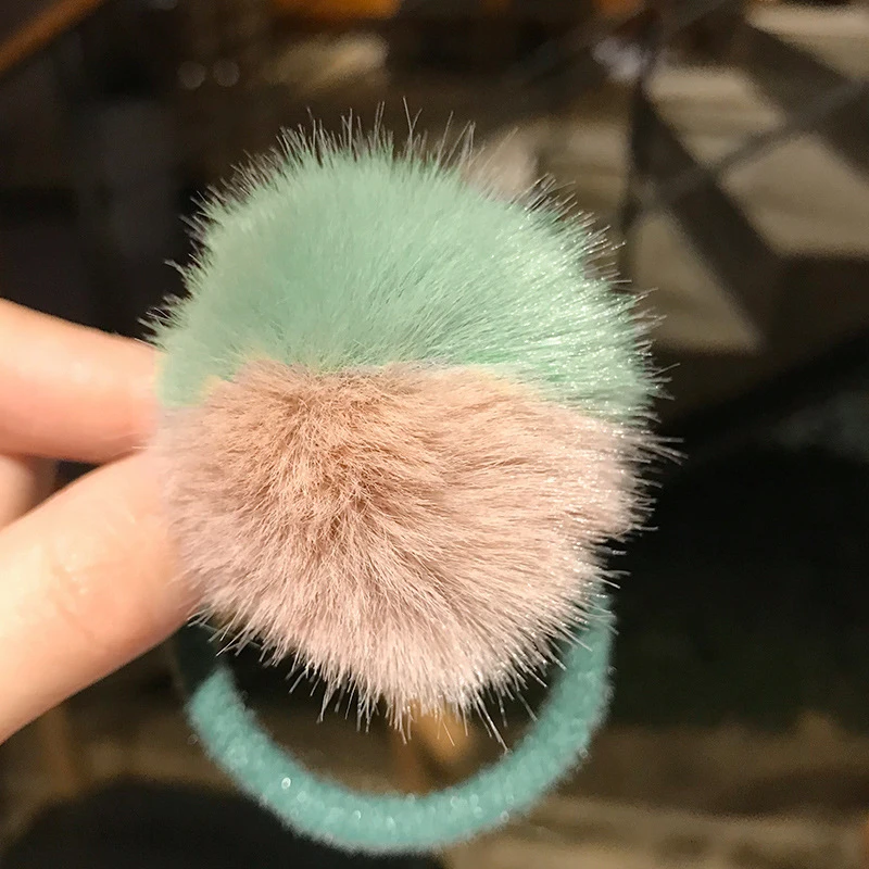Карамельный цвет Искусственный мех мяч веревка для волос помпон эластичная резинка для волос резинка для хвоста лента