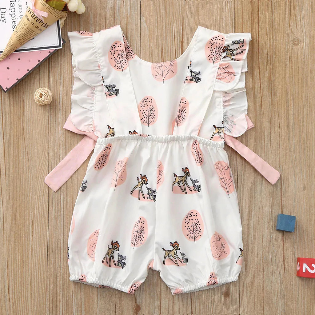 Комбинезон с бантом и рисунком оленя для новорожденных мальчиков и девочек, комбинезон, комплекты одежды