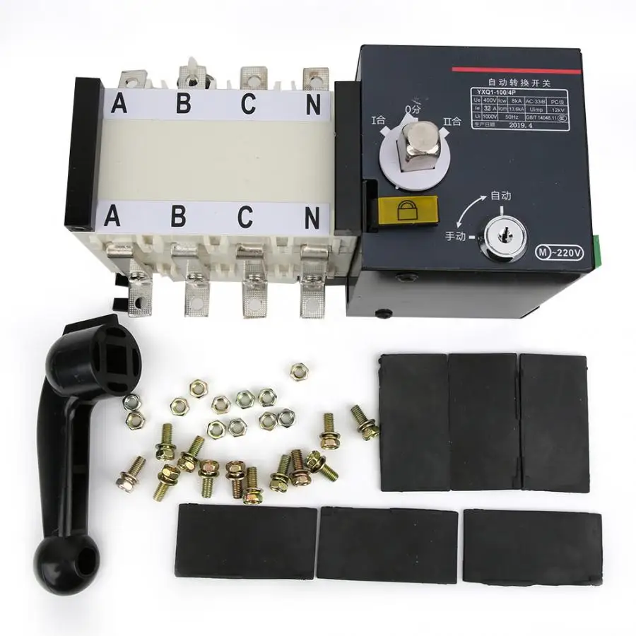 Двойной выключатель питания с функцией дистанционного управления с ручкой 4P 100A