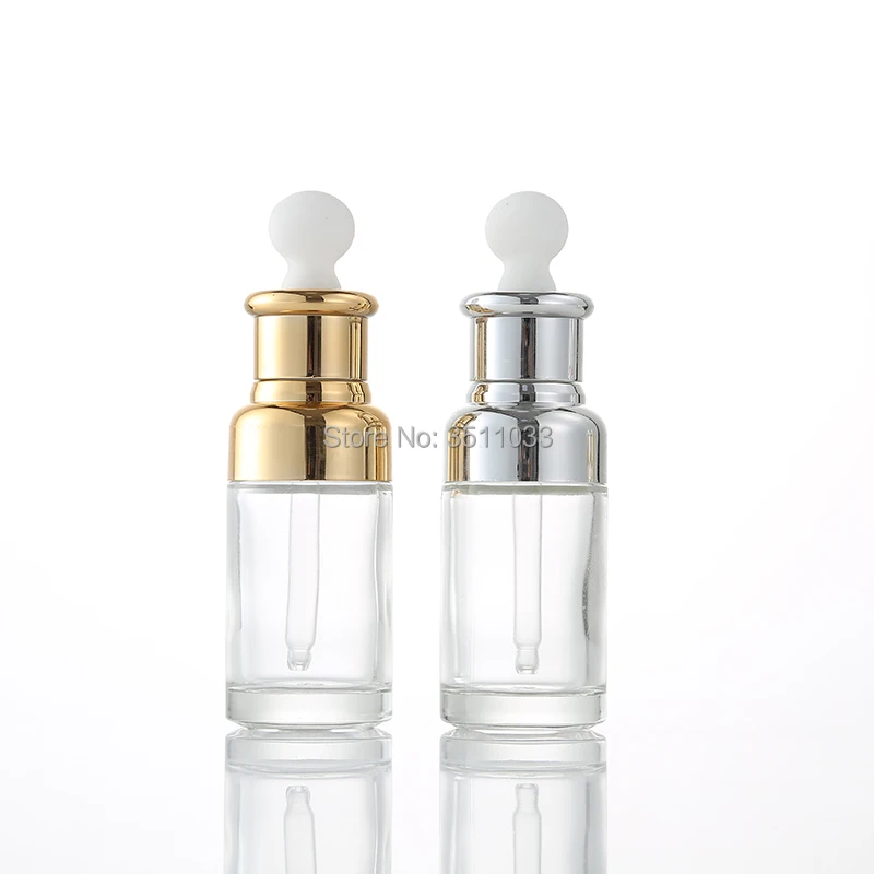 Высококачественная прозрачная стеклянная бутылка эфирного масла, белая резиновая пипетка, косметическая Золотая Серебряная кольцевая капельница, контейнер 15 шт.