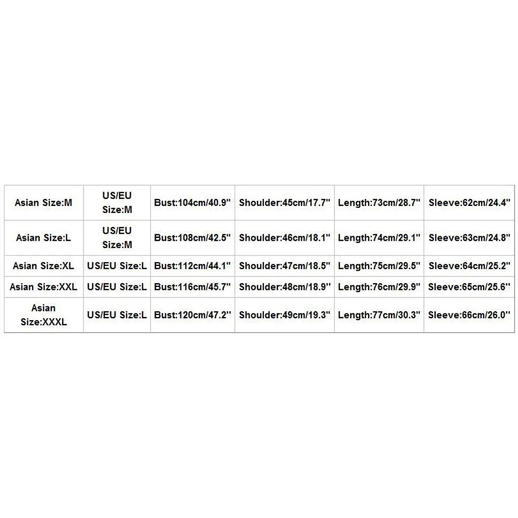 Азиатский Размеры US/EU Размеры Обхват груди Сумка на плечо Длина Рукава М М 104 см/40,9" 45 см/17,7" 73 см/28,7" 62 см/24,4" L М 108 см/42,5" 46 см/18,1" 74 см/29,1" 63 см/24,8" XL L 112 см/44,1" 47 см/18,5" 75 см/29,5" Высота голенища 64 см/25,2" XXL L 116 см/45,7" 48 см/18,9'' 76 см/29,9" 65 см/25,6'' XХХL L 120 см/47,2'' 49 см/19,3" 77 см/30,3" 66 см/26,0''